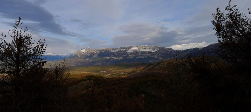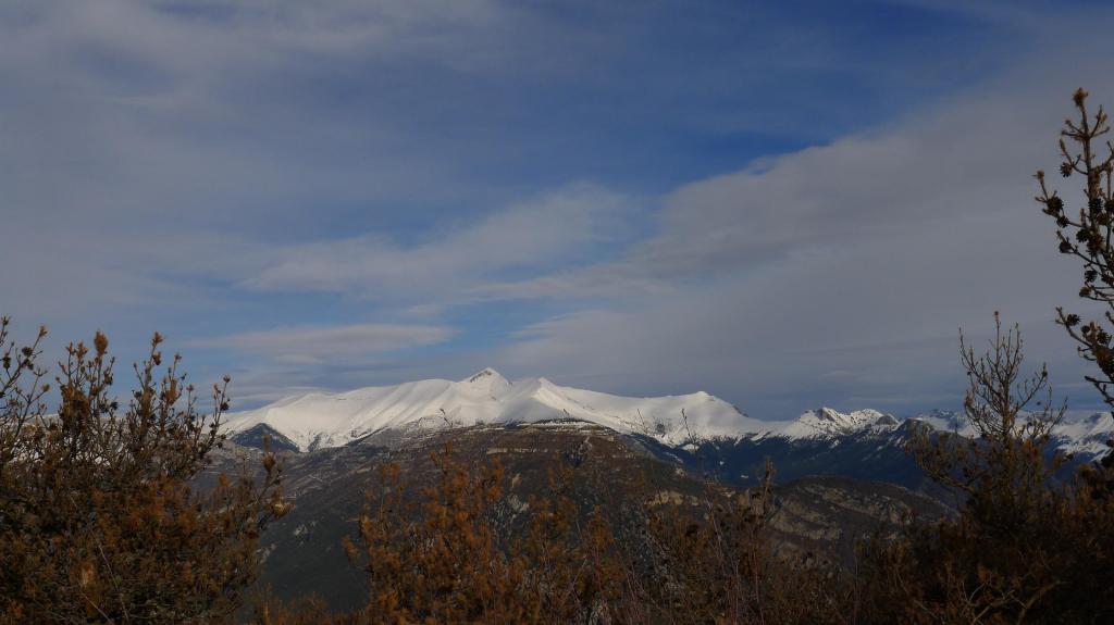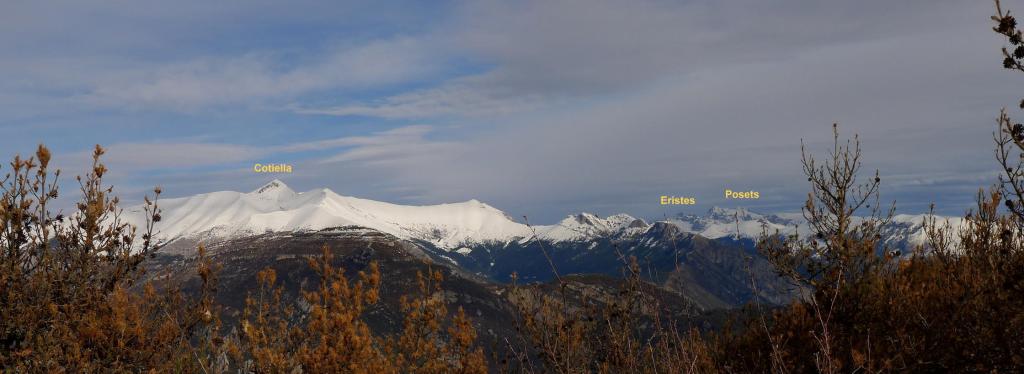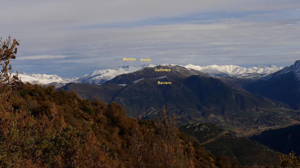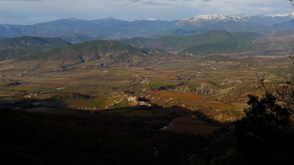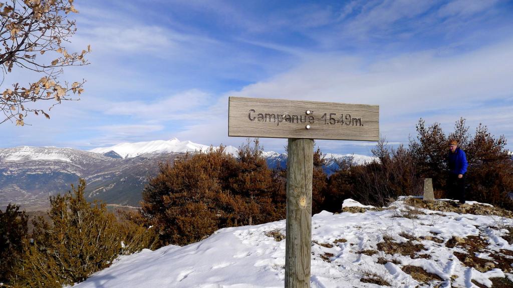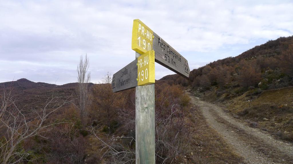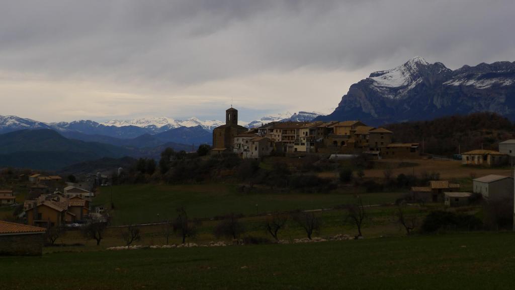 El valle de la Fueva separa las comarcas del Sobrarbe y la Ribagorza. Uno de sus puntos culminantes es el pico Campanué. Se puede acceder por pistas, pero nosotros escogemos una ruta circular que combina senderos y pistas, casi todo el recorrido es por zona boscosa, pasa por varios pueblos abandonados y tiene unas buenas vistas, dominando sobretodo la Peña Montañesa, Cotiella y el Turbón.