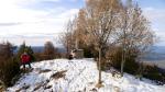 La senda asciende sobre un lomo, entre bosque de carrasca y enebro, está bien jalonada de hitos, pero la vegetación, aunque no está muy densamente cerrada, a veces no deja distinguir del todo el camino. Se llega a un difuso collado (1358m 1h32′) bajo la Peña Calva que queda a nuestra derecha. El camino está nevado, pero se avanza bien. El bosque ahora es de pino y boj, los pinos están totalmente secos debido a la procesionaria.