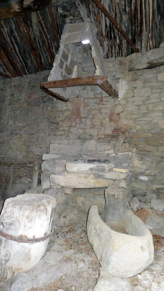Cruzamos una pista (1090m 4h50′) y llegamos al tercer pueblo, Solanilla (1130m 4h58′), donde nos sorprende una casa que era la herrería, con sus utensilios de piedra en el interior. Después se toma la pista otra vez, pero nos desviamos a la izquierda (1105m 5h37′) por un sendero que llega hasta un cortado desde donde se ve todo el valle de Rañín. Se gira a la derecha y la senda desciende en zigzags. Al final se pasa junto a un gran prado vallado con ovejas, cabras y un par de burros que desemboca en la carretera que entra en Rañín (830m 6h29′)