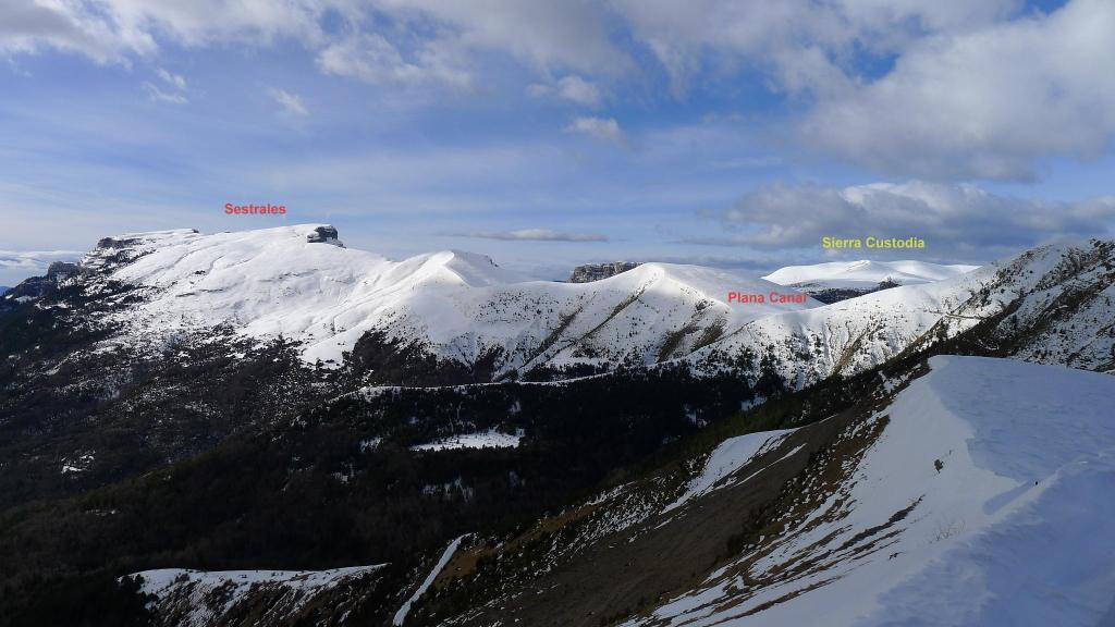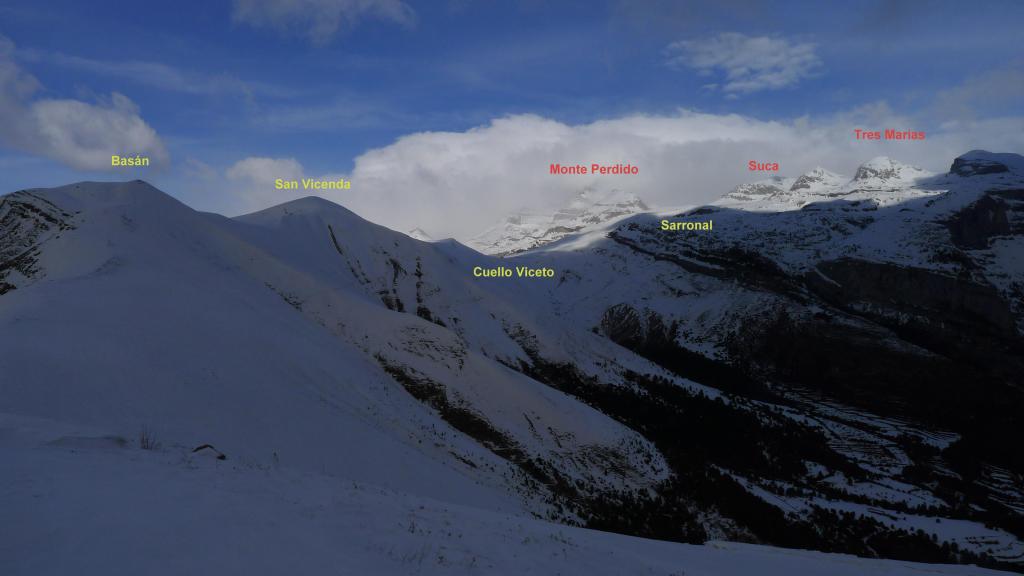 A pesar de ser una segunda opción, ha resultado una bonita excursión, algo dura en algunos tramos por la nieve profunda, pero el tiempo ha aguantado (había dudas) y he tenido bonitas vistas de Sestrales y la fantasmagórica aparición de Monte Perdido entre las brumas. De Bestué conservo un buen recuerdo por la excursión a Sestrales .