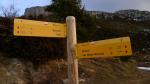 Salgo de Bestué (1235m) por el GR15, siempre bien señalizado, por una senda entre muros de campos trabajados y con bastante pinchos, que asciende hasta desembocar en una pista (1435m 0h36′). Sigo la pista, con nieve y rodadas heladas, bajo las paredes de Castillo Mayor, hasta que, después de pasar una barrera canadiense, un cartel indica desviarse a la derecha por senda de nuevo (1560m 1h06′).