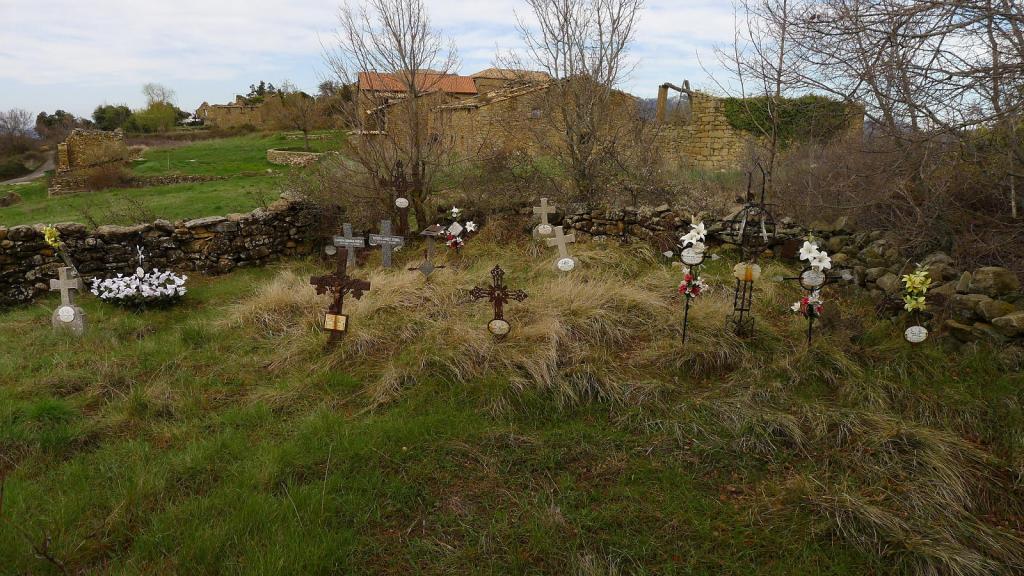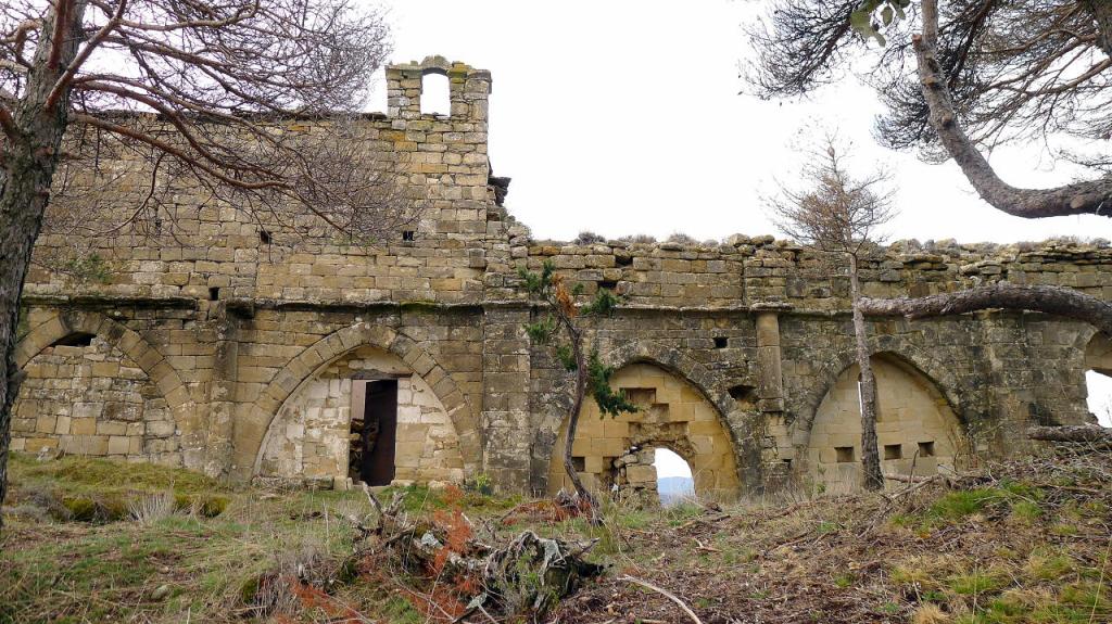 Ya se ve la ermita a la que se accede por una senda con hitos (Ermita del Tozal 1228m 1h50′). Enclavada sobre un mallo de conglomerados, el edificio está en ruinas pero da una idea de su importancia en el pasado. En este lugar se asentaba una iglesia con funciones defensivas en el siglo X. Tras ser demolida, el edificio actual dataría de finales del XII o principios del XIII.