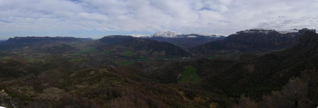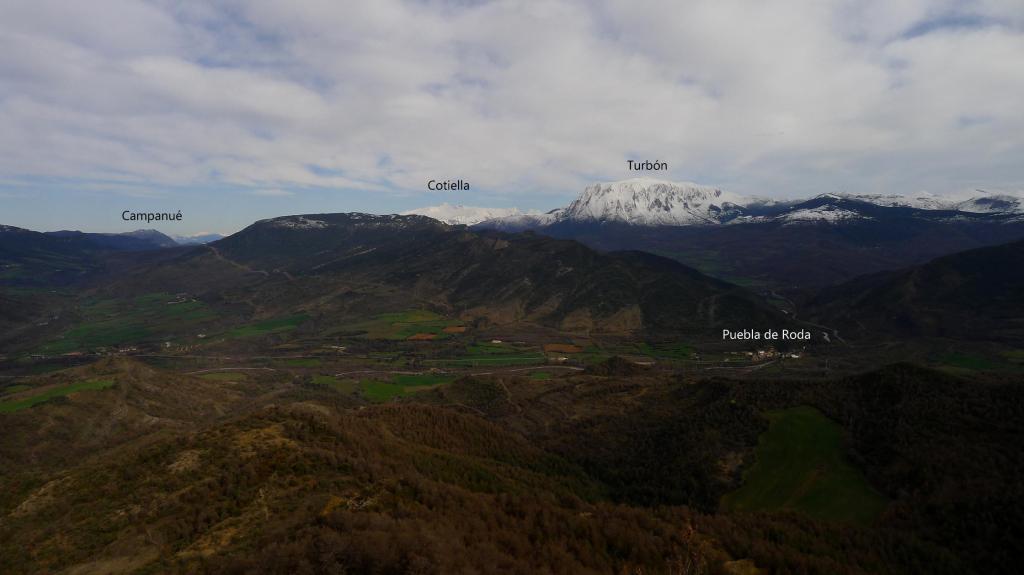Suave excursión por los alrededores de la Puebla de Roda, en el valle del Isábena, llegando a la imponente ermita de la Virgen del Tozal y que alargamos un poco por la pista que se dirige a Cajigar. Es un día bastante nublado, pero las vistas de Cotiella y el Turbón completamente cargados de nieve son preciosas.