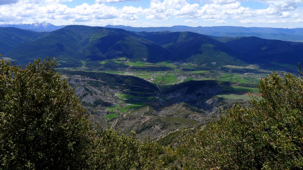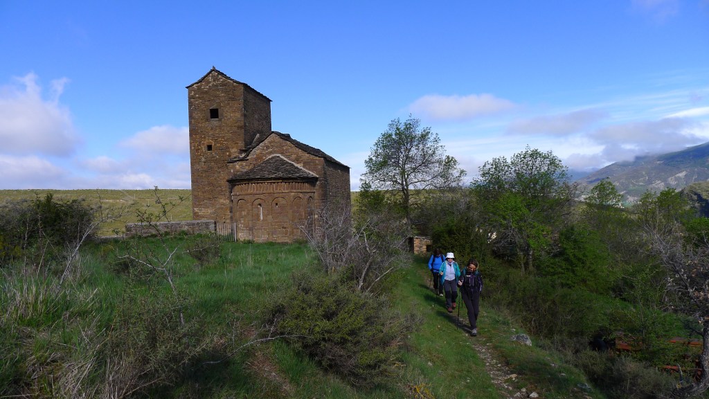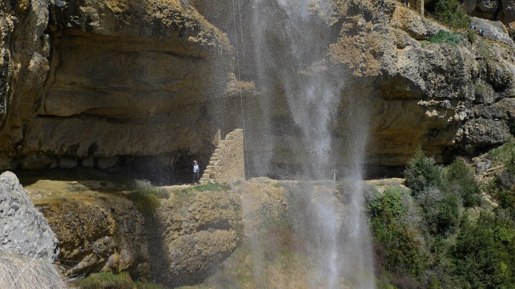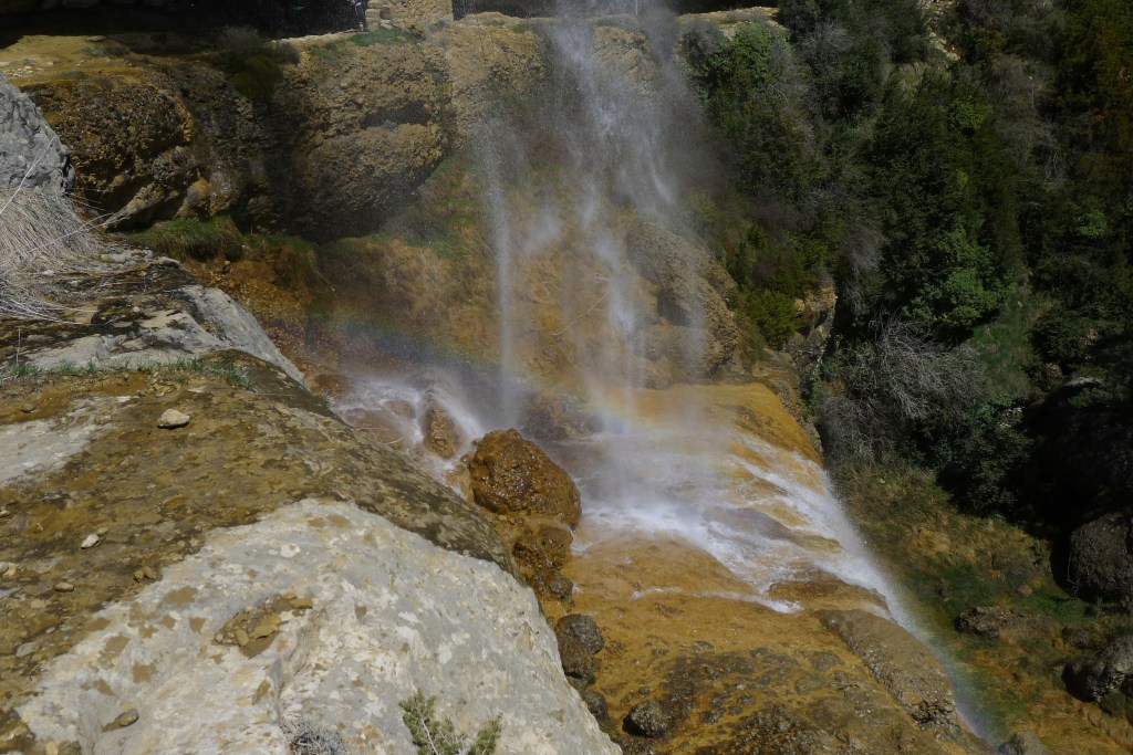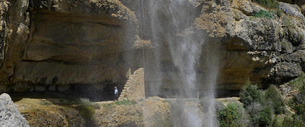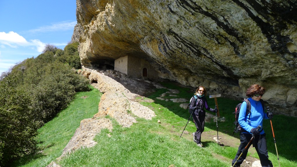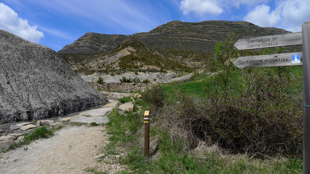 Retomamos el camino hacia el sur y, girando al este tras la ermita de la Cruz, avanzamos al pie de la gran pared de conglomerado donde se esconden las ermitas rupestres (PR-HU-4). Las más espectaculares son las de San Cornelio y la Cueva, tras la impresionante cascada del Chorro. A partir de ahí empieza el descenso por el barranco de Santa Orosia. Poco a poco los conglomerados van siendo sustituidos por margas mientras nos vamos acercando al valle donde se asienta el pueblo de Yebra de Basa (877m 5h52′), fin de nuestra excursión.