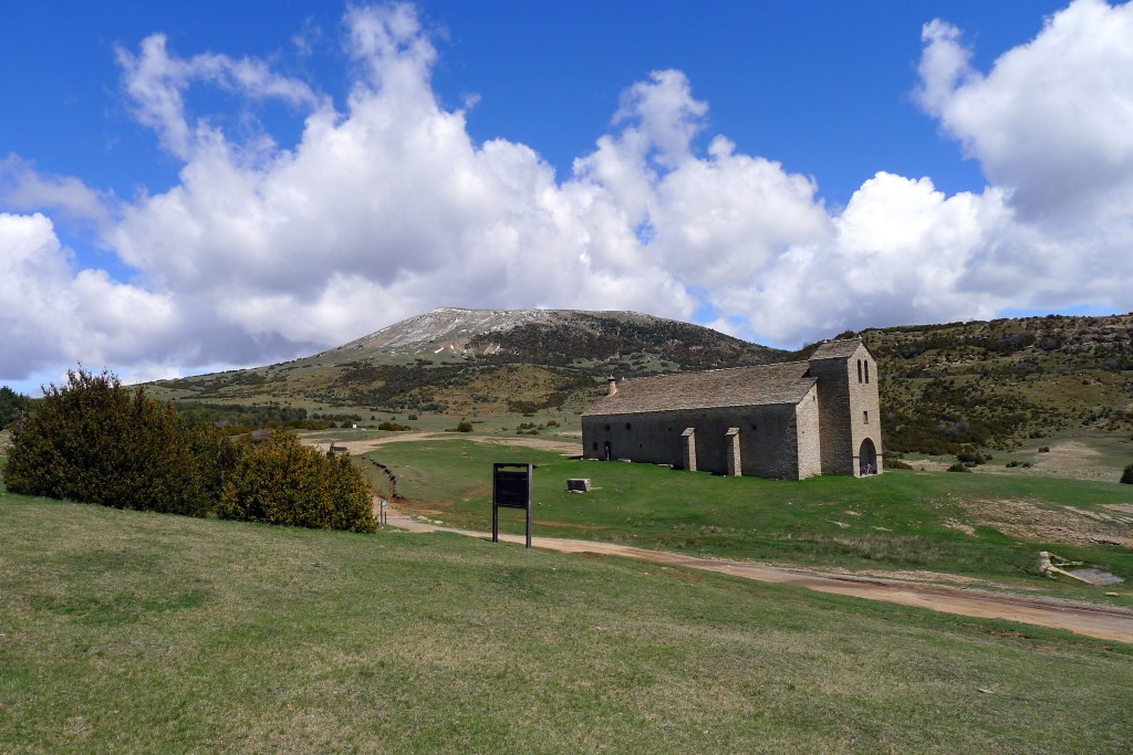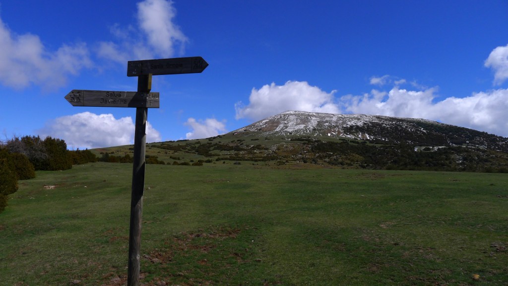 Tras varios cruces más sencillos se llega a las praderas de los llanos de la Lera (1600m 2h22′), con el monte Oturia a nuestra izquierda. Hay que atravesar un pinar para acceder a la ermita de Santa Orosia (1555m 2h45′) donde hacemos una parada y comemos.