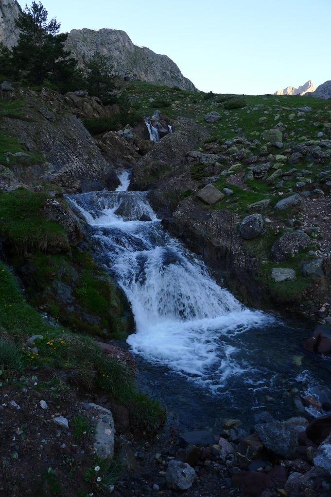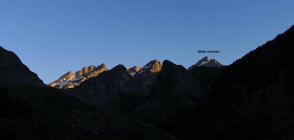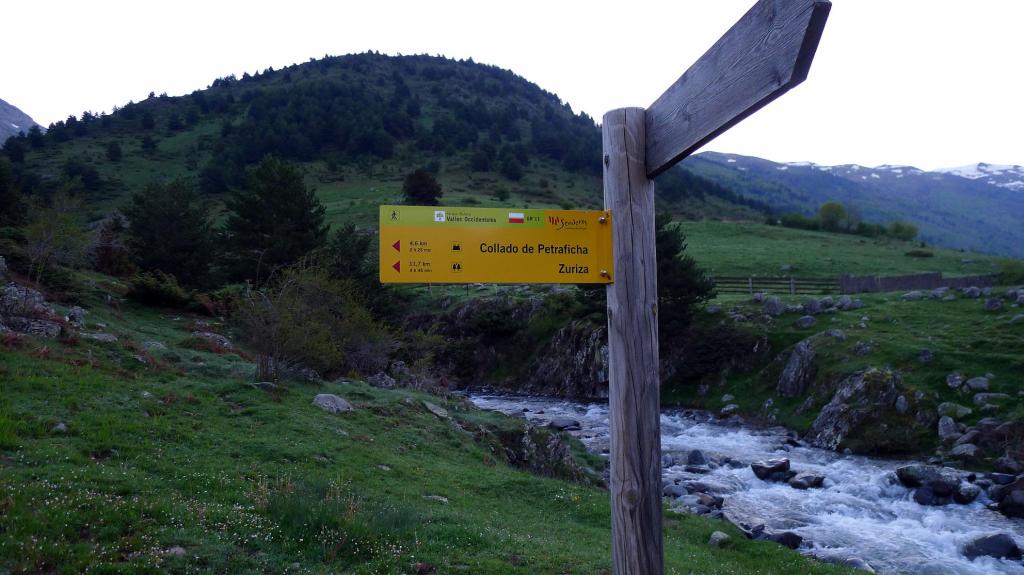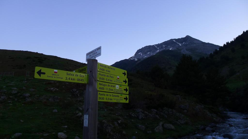 Aún me sorprendo al ver gente subiendo a estas horas en un día en que las previsiones meteorológicas son claramente de tormentas. Yo me he pegado un buen madrugón para estar abajo sobre las 12. Ya en el sendero normal del ibón de Acherito llego al refugio de la Mina (1228m 5h31′).