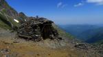 La parte más pendiente para llegar al puerto tiene varios neveros y hay que buscarse la vida para pasarlos y recuperar el camino. El final está tallado en la roca (2430m 3h15′) por las antiguas obras mineras. En el port d’Urets (2535m 3h39′) hay una cabaña en forma de iglú de lajas de pizarra; en el lado aranés, justo al sur, la cuenca del lago de Montoliu.
