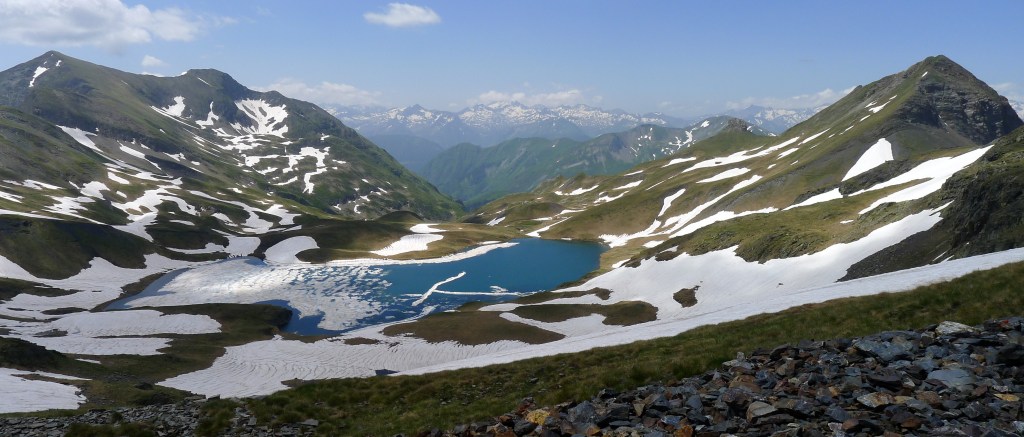 Mi primera ruta en estos días en el Ariège trata de ascender al pico Maubermé, una destacadísima montaña de reconocible silueta desde muchos puntos del Pirineo. Con sus 2880m es el punto más alto de toda la línea fronteriza entre el valle de Arán y el Ariège francés. Subí esta cumbre desde Bagergue, en el valle de Arán, con Josan y Ramón Monedero, y me disponía a repetirla desde la vertiente francesa, una ruta larga y exigente. Como veréis en esta entrada no pude llegar a la cima ya que empecé a caminar un poco tarde tras el largo viaje, había muchos neveros que me ralentizaron y las nubes de tormenta eran amenazadoras, así que me conformé con una cumbre menor, el hombro occidental del Tuc der Òme.