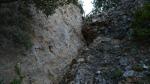 Ya bajo la pared me desvió a la izquierda (800m 0h22′). Es el punto de bifurcación hacia la ferrata Varela-Portillo y la ferrata de la Mora, así que aquí conectaré en el descenso. Estoy bajo la cueva Calva. La senda discurre bajo la pared y se va hacia la izquierda (oeste). Cruzo un barranco (816m 0h45′). Después gira al norte para pasar por una faja (1000m 1h01′) en la que se gira hacia el este.