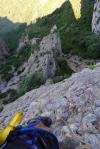 Sigo el descenso con tramos de sirga, cadenas y algunas grapas y otros tramos de senda. Al final, debajo de la pared, la senda gira a la derecha (NW) y luego al oeste hasta conectar con el punto de cota 800m (4h26′) y de ahí al aparcamiento (625m 4h47′)