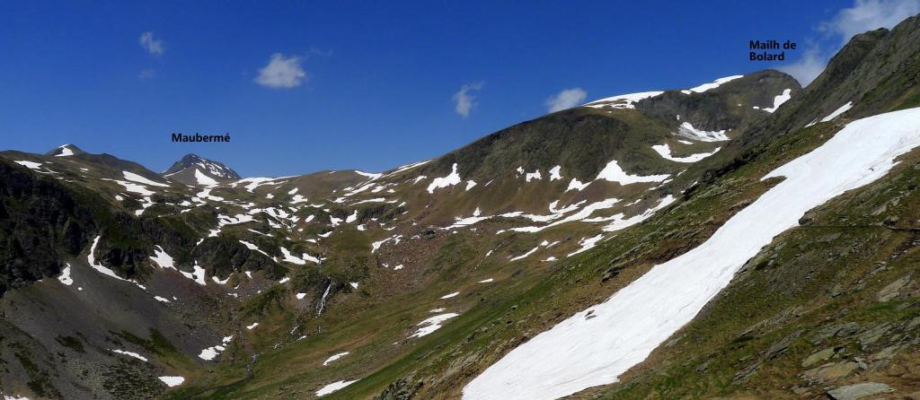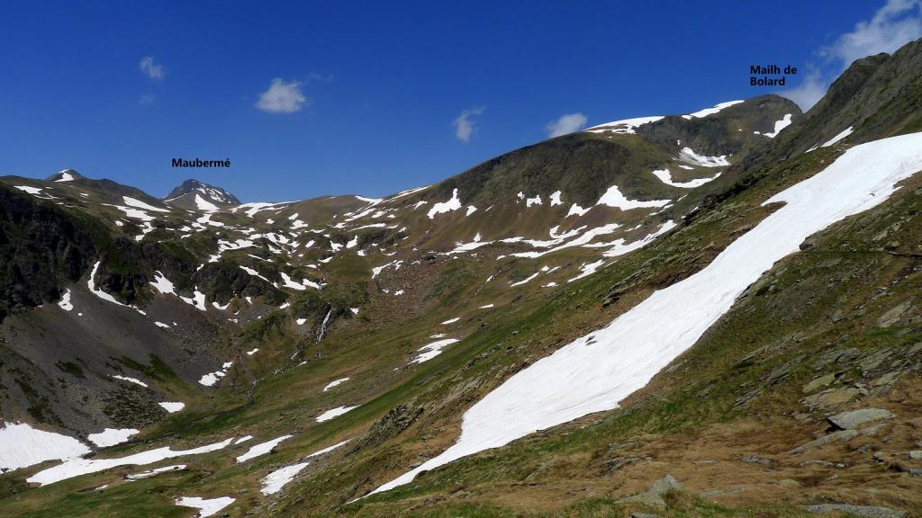 Entre los senderos transfronterizos del Ariège está el sendero del port d’Orle, que comunica con España por el valle de Arán hacia el refugio de Montgarri. Utilizo esta ruta para ascender al Mail de Bulard 2750m (IGN francés) o Mail de Bolard 2751m (IGN español) o Malh de Bolard 2752m (ICC catalán), según las cartografías. Un hermano pequeño entre Maubermé y el Barlonguera, que superan los 2800m, pero aún así es un pico bastante destacado.