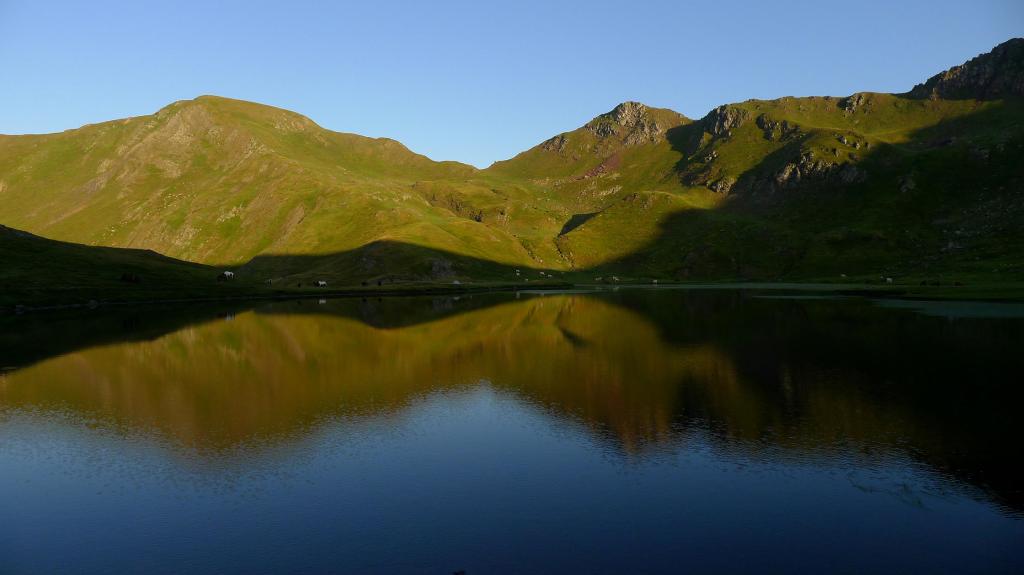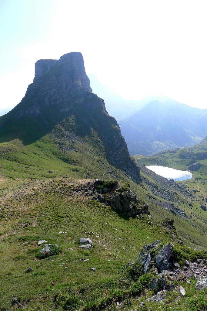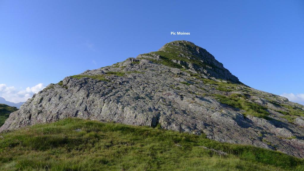 Bajo por el mismo camino. Tras descender un poco desde el primer colladito me dirijo por la pendiente de hierba al lac de Bersau (2110m 2h44′). Sigo por encima de su orilla sur. Luego me elevo por un lomo y tomo una senda que sube al col de Bielle (2215m 3h18′). Subo de nuevo al pic des Moines (2346m 3h36′) y bajo al collado des Moines (2160m 4h04′).