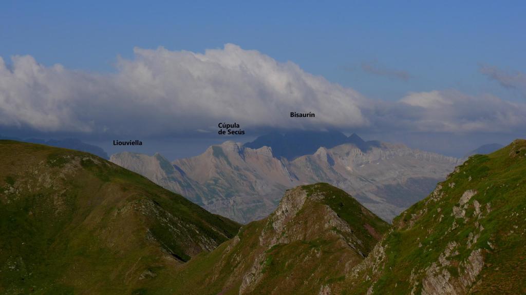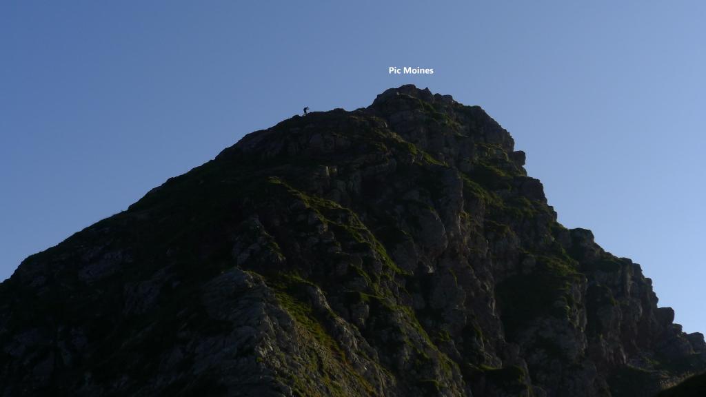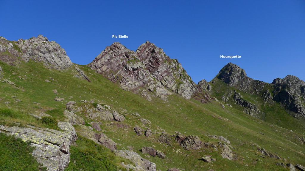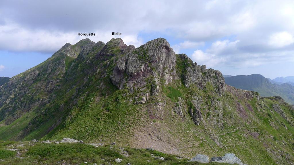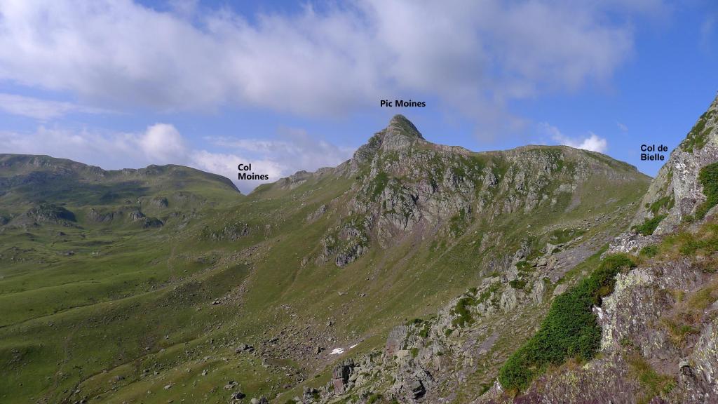 Asciendo el pic des Moines (2346m 1h28′), entretenido camino con algún paso en el que hay que trepar, pasos fáciles pero con exposición (Ver la entrada al pico Monjes). Continúo la suave arista hacia el norte hasta un amplio collado (2255m 1h38′) y, pasando un pequeño mogote, al collado de Bielle o Houeytsoule (2215m 1h45′).