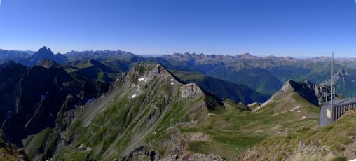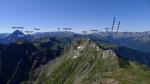 En la cresta hay traza de senda, primero por la izquierda (ladera norte) y luego por la derecha. La cresta es fácil, pero hay que ir con un poco de cuidado. Cima del Sesques (2606m 3h10′) junto a unas antenas. Paso media hora en la cima, con un tiempo estupendo y magníficas vistas.