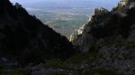 Tomo una bifurcación a la derecha (1195m 0h10′) y una segunda bifurcación a la derecha (1550m (0h48′). La ruta entra en una vaguada entre las paredes a mi izquierda que caen hacia el valle del Cinca y la cresta a mi derecha de la sierra Ferrera. La vegetación se abre y el camino es claro entre erizones y bojes hasta llegar a un hombro herboso (1740m 1h07′).