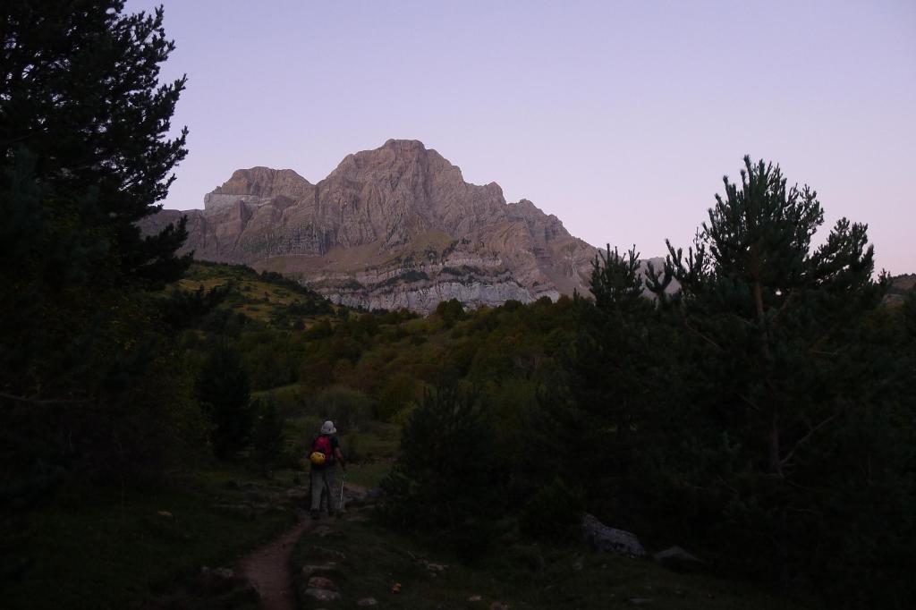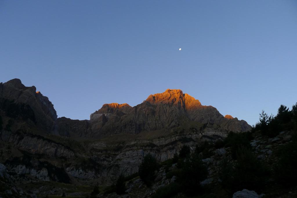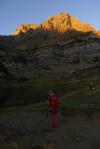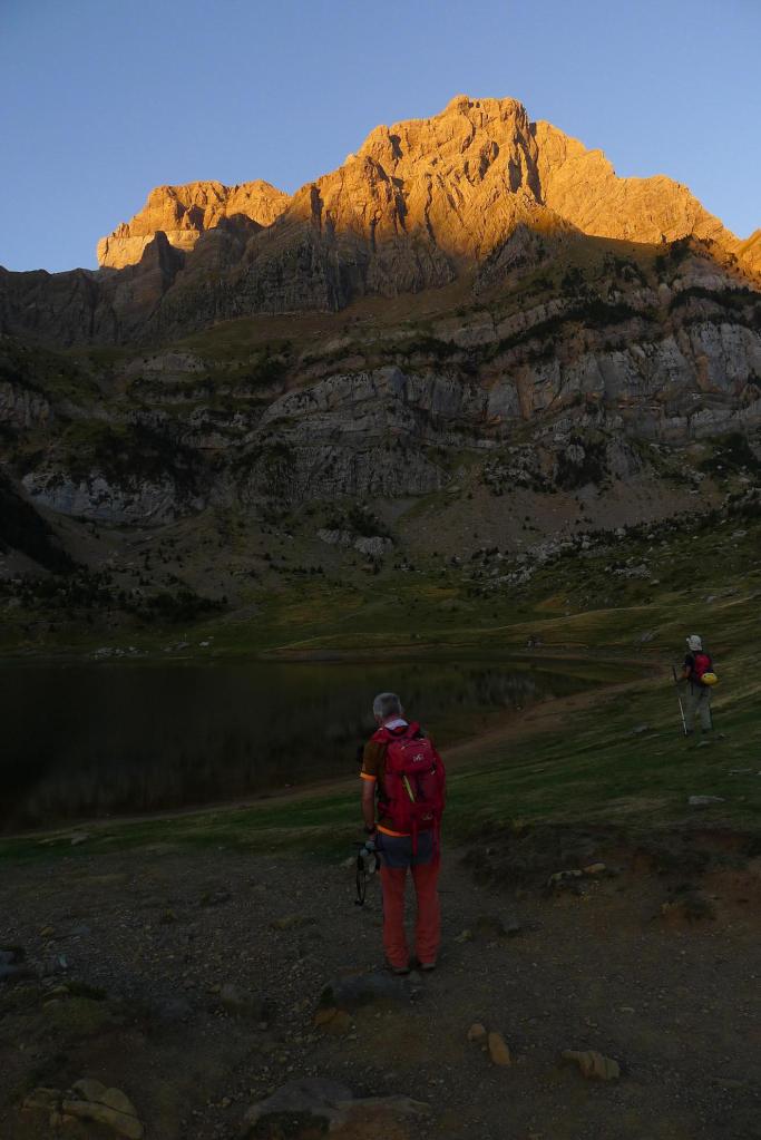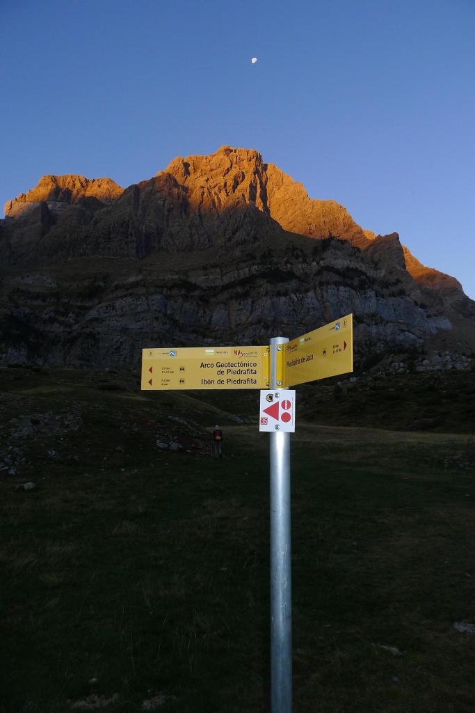 Salimos del aparcamiento de la Cuniacha (1370m) camino del ibón de Piedrafita, con señalización de pintura azul, por una pista en la que tomamos algunos atajos, hasta que nos desviamos a la izquierda (1450m 0h14′) hacia el refugio de las Planas o del Boz (1536m 0h21′)., que queda a nuestra derecha. Enseguida se llega al ibón de Piedrafita (1610m 0h46′) bajo las imponentes paredes de Telera.