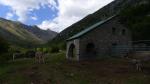 Volvemos al collado (4h29′) y descendemos hacia el WSW por terreno confuso en el que vamos encontrando hitos discontinuos. Tenemos que rectificar un par de veces. Hay que tomar la vaguada en descenso y desviarse a la derecha para llegar a la vaguada principal de Zarrambucho que desciende hacia el sur. Conectamos con el valle de Zarrambucho en una fuente (2324m 5h07′). Sigue el descenso más o menos por el fondo de la vaguada. Hay alguna traza de senda y luego ya se ve al fondo el plan de Usabas, donde está el refugio de Usabas (1825m 5h57′), en un prado con vacas.