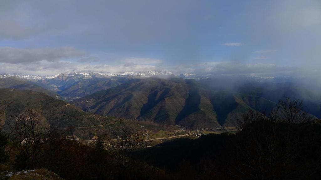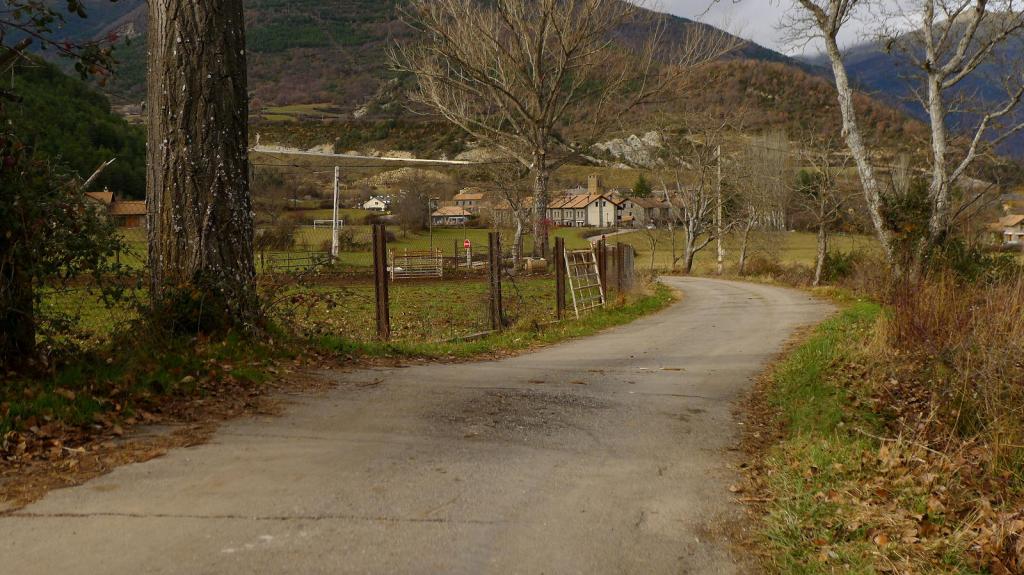 En Fiscal (760m) tomo la carretera a Lardiés y la dejo al cabo de unos 2km tomando una pista a la izquierda (840m 0h25′). La pista es de peaje para vehículos (3€ a pagar en el ayuntamiento) y está en buen estado; para caminar es un poco pesada. Asciende cerca del barranco de San Salvador y luego hay una bifurcación a la izquierda (1045m 0h57′); a partir de aquí la pista empeora.