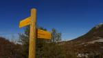 Regreso hasta el cartel en el campo labrado (980m 2h16′) y tomo la pista a mi derecha. Está bastante embarrada con un lodo pegajoso y me encuentro unos cazadores, pero parece que ya han terminado su jornada de caza. Recorro 1.4km hasta salir por una senda a la izquierda (910m 2h29′) que avanza sobre lomos margosos con postes de GR bien visibles.