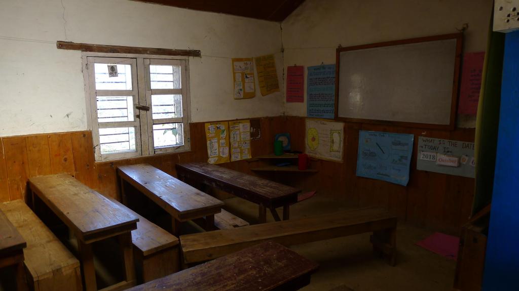 Después visitamos la escuela, que es el centro educativo principal de la zona y, dado que Jacinto y yo somos profes, también nos resulta interesante el contraste con nuestros colegios. Nos enseñan una flamante aula de informática, donación de una organización neozelandesa y otra zona moderna construida con fondos alemanes tras la destrucción del terremoto de 2015. El resto de aulas, sin embargo, son muy básicas. También hay una zona de alojamiento para los alumnos que viven lejos, en reconstrucción por la devastación del terremoto.