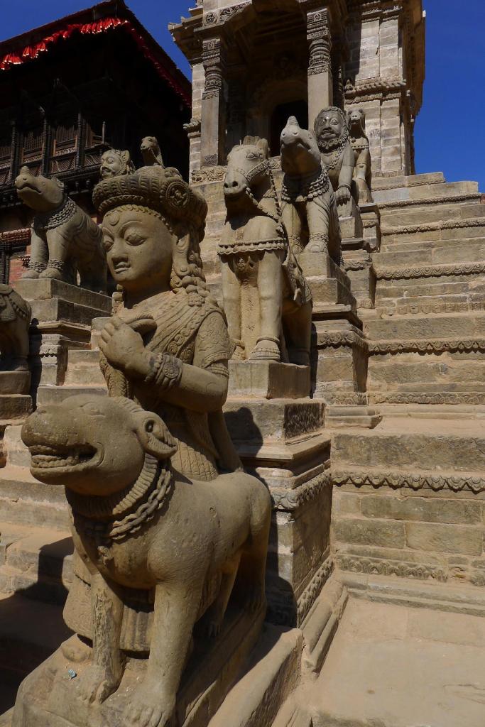 Tras una noche con cama y sábanas, salimos en una furgoneta que nos ha contratado Rinji para un tour por Katmandú. Visitamos Patan Durbar Square, donde se abre un espacio lleno de estupas, edificios históricos, palacios y museos. Me llaman mucho la atención los patios de estos edificios llenos de madera grabada con una finura extrema, de estilo hinduísta, con budas, dioses y animales.