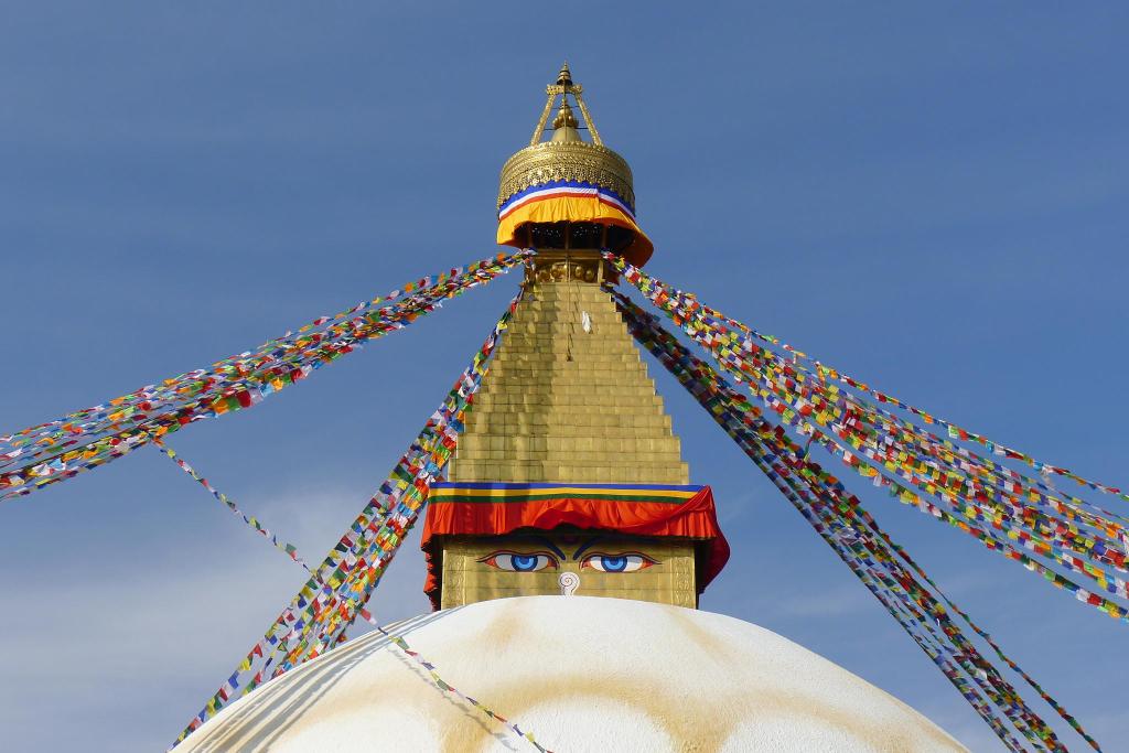Ya por la tarde visitamos la estupa de Boudhanat. en una gran plaza circular se levanta la blanca estupa coronada por su minarete dorado con los ojos de Buda. Se derrumbó totalmente y se ha reconstruido de nuevo.