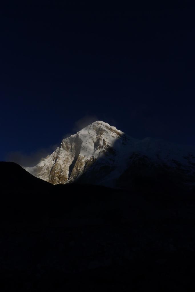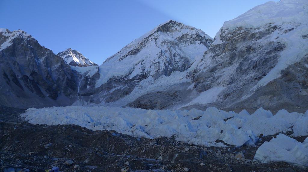 Es un lugar desolador. Lo más bonito es ver la parte alta del glaciar del Khumbu, ya con hielo, no cubierto de piedra, y la entrada de la cascada de hielo. Ah! y sobre todo que hemos hecho el camino solos.