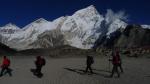Una curva a la izquierda nos permite superar la arista que baja del Lobuche. En este punto hay otra vista espectacular. Tenemos el Lobuche East a la izquierda y además vemos gente subiéndolo; nosotros estaremos ahí dentro de cuatro días. Y al fondo el valle del Khumbu con el Lhotse y el Nupse a la derecha y, justo enfrente, el Pumori, Linghtren y Khumbu-Tse.
