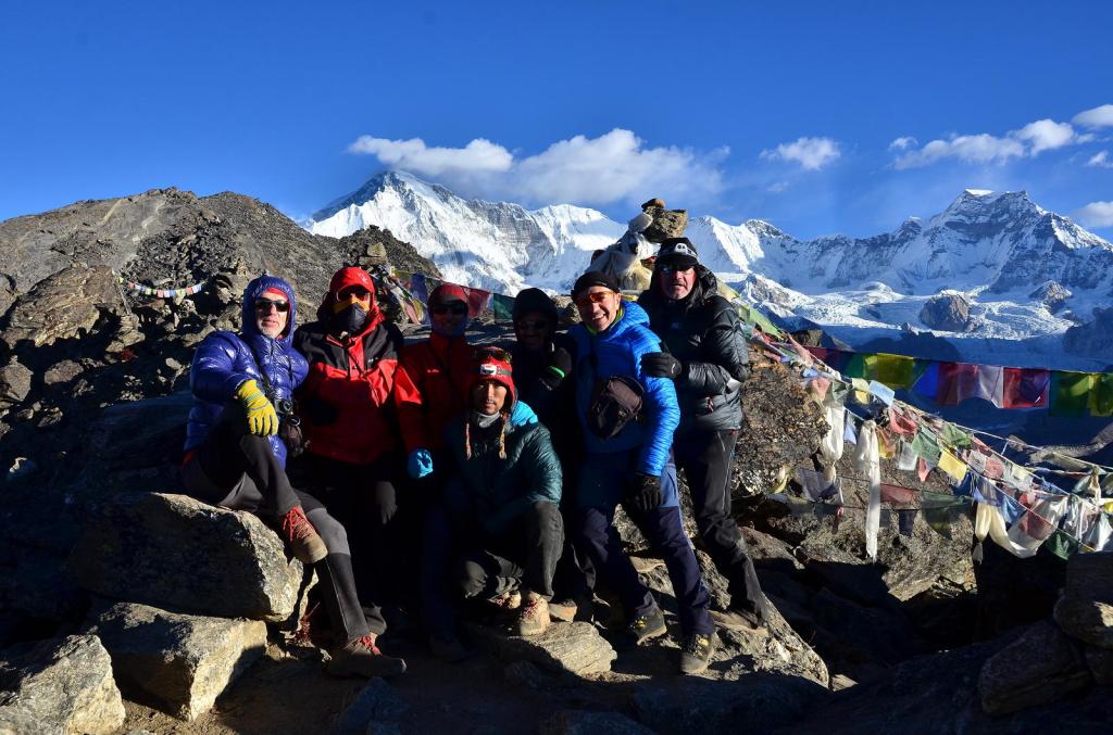 En la cima del Gokyo Ri (5357m 2h04′) todos no hacemos las fotos de rigor, disfrutando de un tiempo buenísimo que nos permite pasar un rato en la cumbre.