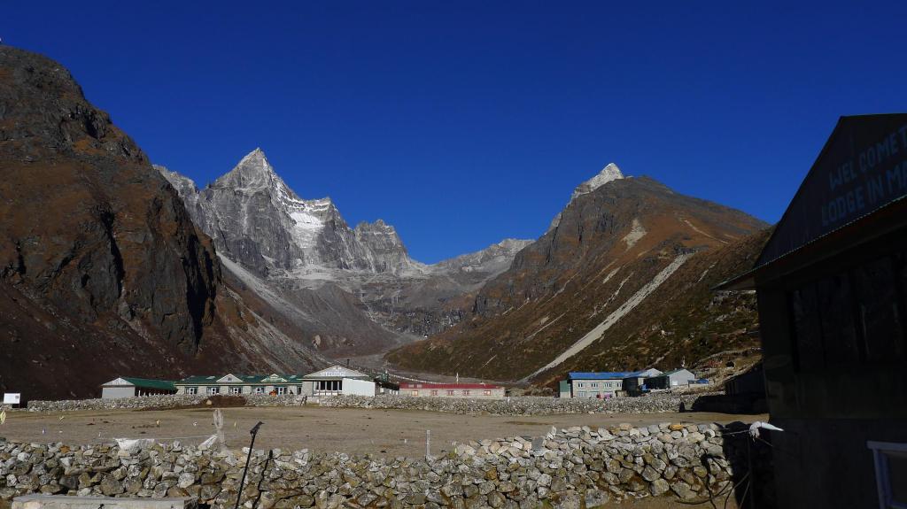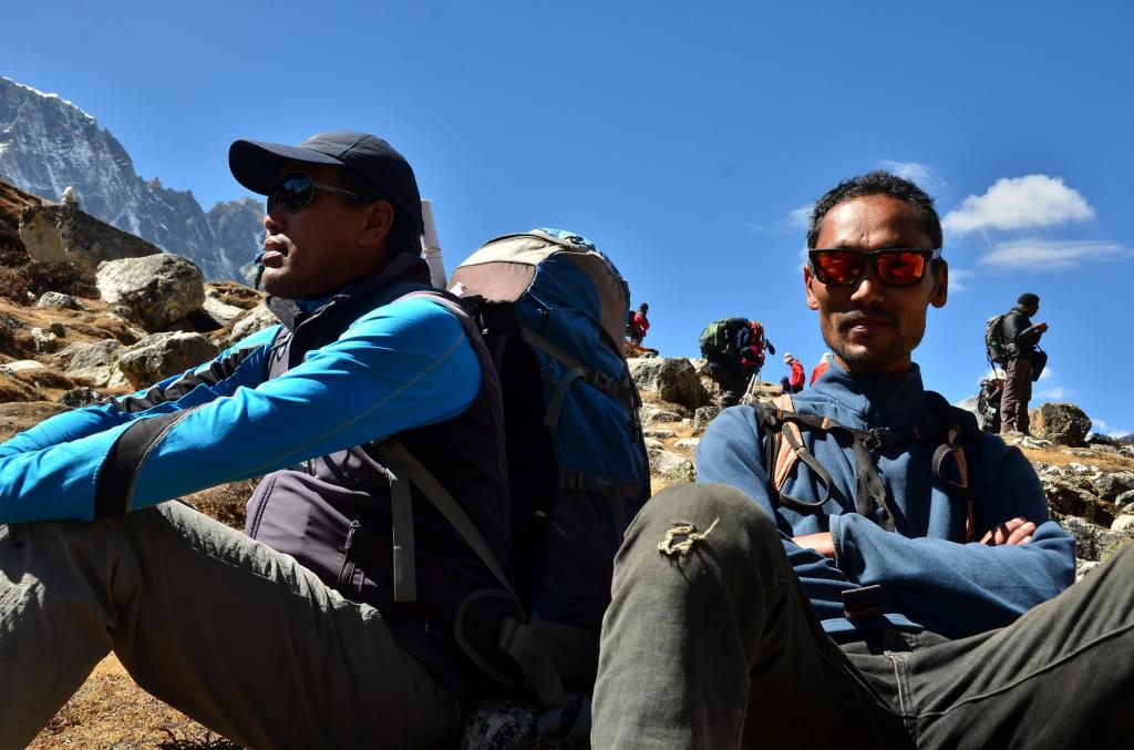 Al entrar en Gokyo nos encontramos por fin con Rinji, ya que hasta ahora habíamos ido solo con Dawa. Ha tenido que venir en helicóptero a Lukla y también de Lukla hasta aquí. Por lo visto los vuelos a Lukla llevan 3 días colapsados.