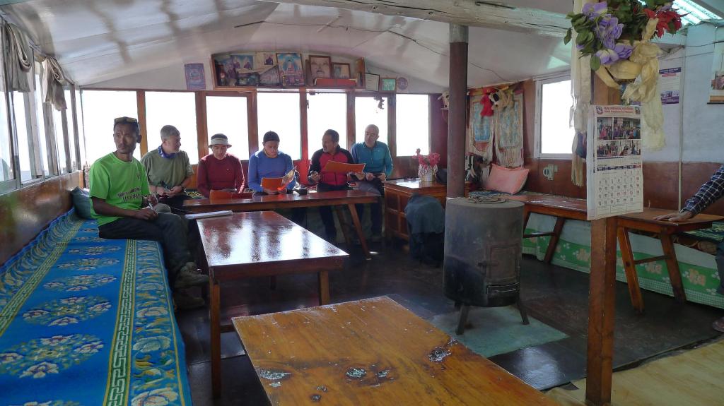 Tras un descanso damos un paseo por el pueblo hasta una especie de hospital donde una organización americana recauda fondos para ayudar a los porteadores. Hace bastante frío, así que el comedor del lodge es el lugar más acogedor. Rafa saca uno de los sobres de jamón que han traído de Burgos, ¡riquísimo!