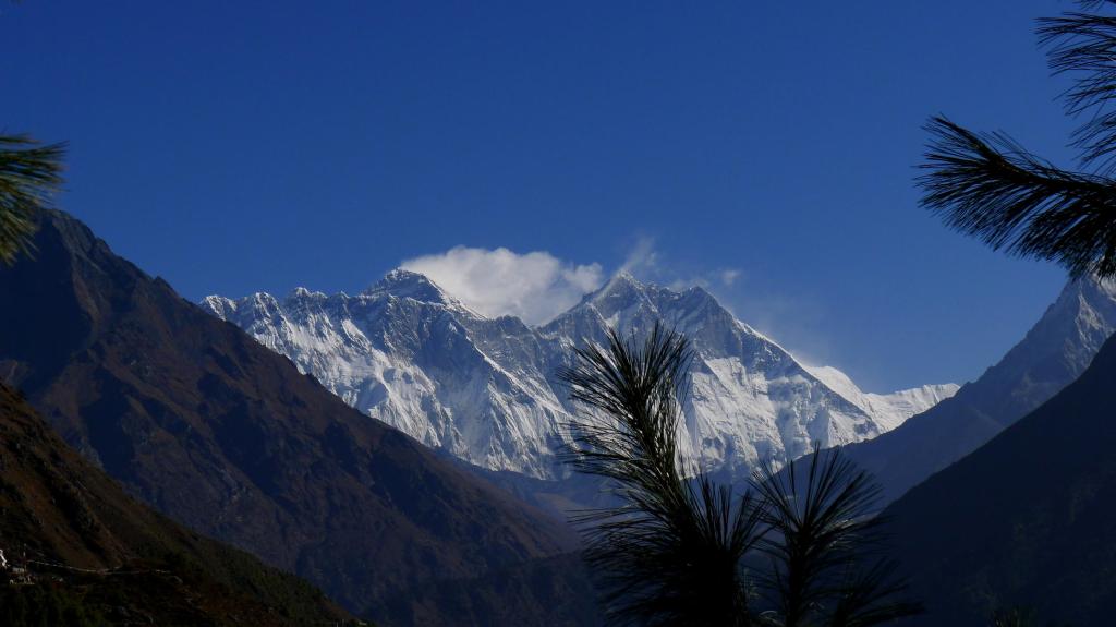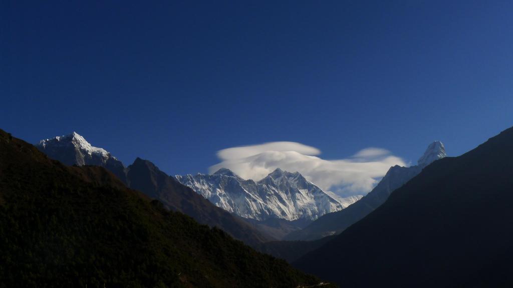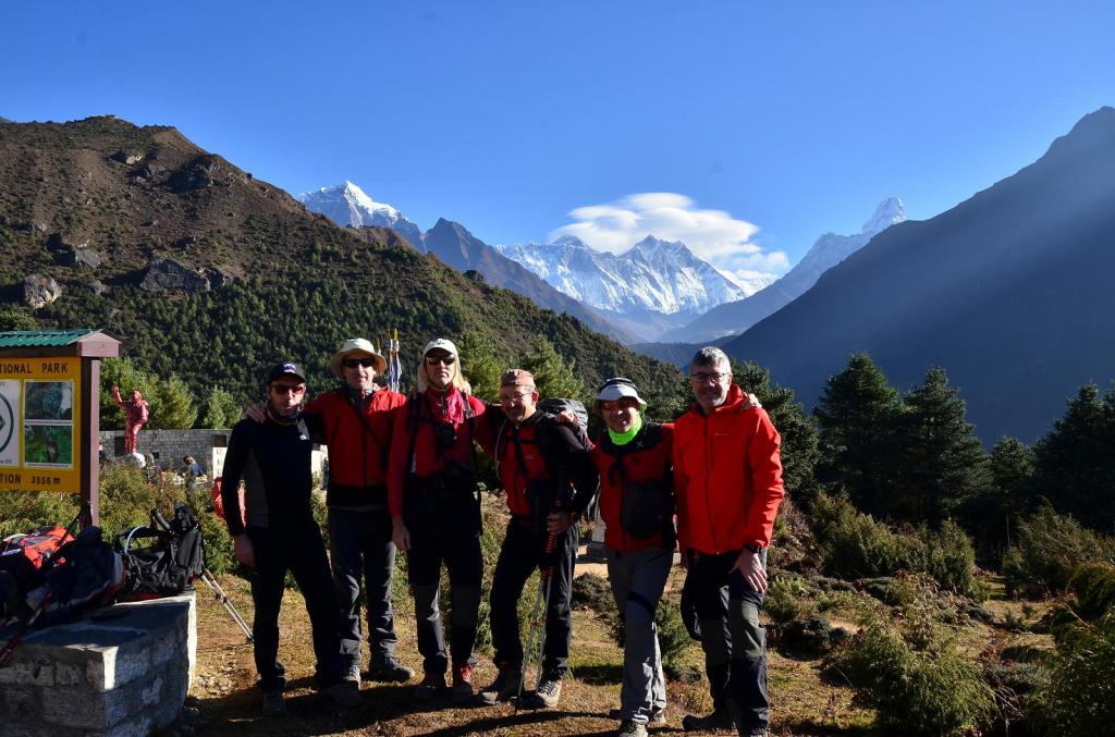 Salimos temprano de Namche (3433m) hacia un montículo al este donde disfrutamos de la primera vista del Everest, Lhotse y Ama Dablan, algo espectacular. En Everest Point of View (3547m 0h35′) hay una estatua dedicada a Tensing, el sherpa que alcanzó por primera vez la cima del Everest junto a Hillary, y un pequeño museo sobre el Everest.