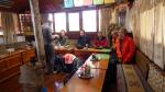 Nuestro lodge (3433m 7h03′) está en la zona alta, más arriba de calles con gran ajetreo de turistas y gente local, muchas tiendas de material de montaña y productos locales. Tomamos un té y subimos a descansar a las habitaciones. Por la tarde bajamos a un bar donde la wifi funciona muy bien, el Himalayan Java Cafe.