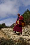 El camino, ya sin empedrar, continúa entre una vegetación boscosa. Después hay una potente subida. Nos metemos en el lomo entre dos valles, el que va hacia Thame, al NW, y el que va hacia Tengboche, al NE.