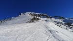 En el collado empieza a azotar el viento. Es cuestión de seguir cerca de la arista por fuertes palas hacia el N. El esfuerzo se deja notar. Se cramponea con seguridad por la nieve dura, pero la pendiente sigue aumentando. Ya muy cerca de la cumbre se gira a la derecha y en unos metros de flanqueo me encuentro sobre el Bisaurín (2670m 2h38′). La vista, como he dicho es impresionante, pero tampoco puedo estar mucho rato porque el viento es frío.