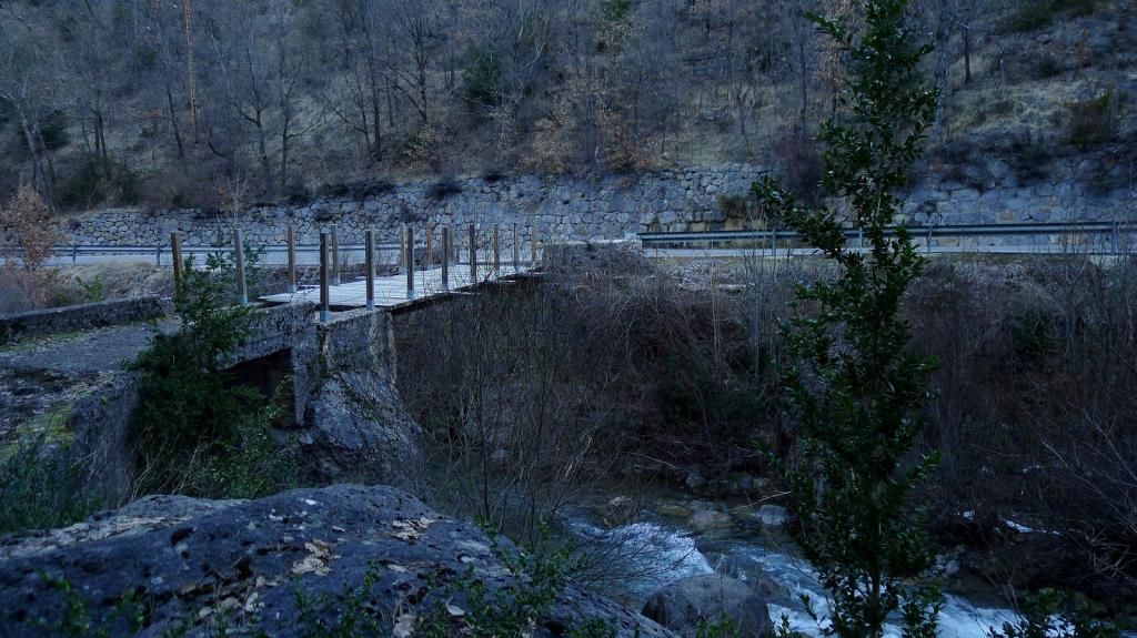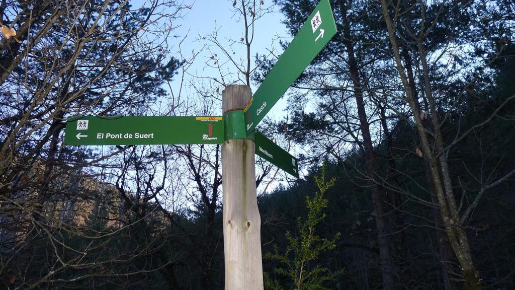 Al entrar en Pont de Suert se toma la N-260 en dirección a La Pobla de Segur y Tremp y, al pasar el túnel, en el Km. 345 hay un amplio aparcamiento (825m) a la derecha, con fuente y zona de picnic. Hay que andar unos 150m por la carretera para tomar un puente a la derecha sobre el río Font de l’Aranyó donde empieza el camino.
