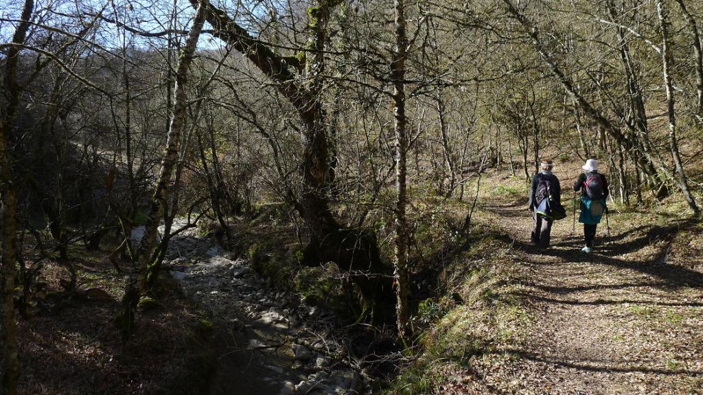 Salimos de Larraona (760m) por la pista que sale del pueblo en ligero descenso hacia el SSE hasta el lecho seco del barranco de Ube, introduciéndonos en el robledal. Entroncamos con el río principal de Uiarra en un puente (650m 0h50′) que no hay que cruzar, seguimos por la orilla izquierda.