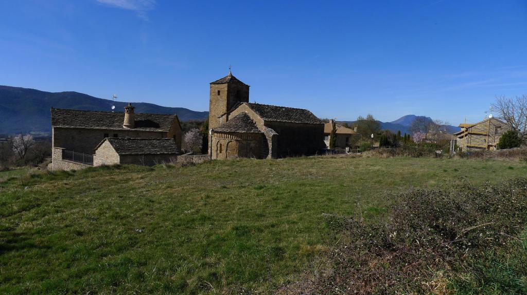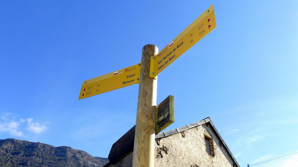 Vadeamos el riachuelo y tomamos la senda que enseguida llega al cruce a Satué (885m 0h09′). Sin entrar en el pueblo continuamos por el GR. La parte más agradable del recorrido es desde Satué hasta Isún de Basa (988m 0h55′). En Isún las casas están muy arregladas y la iglesia románica es interesante. Después ya es carretera asfaltada hasta el pequeño pueblo de San Román de Basa (998m 1h14′).