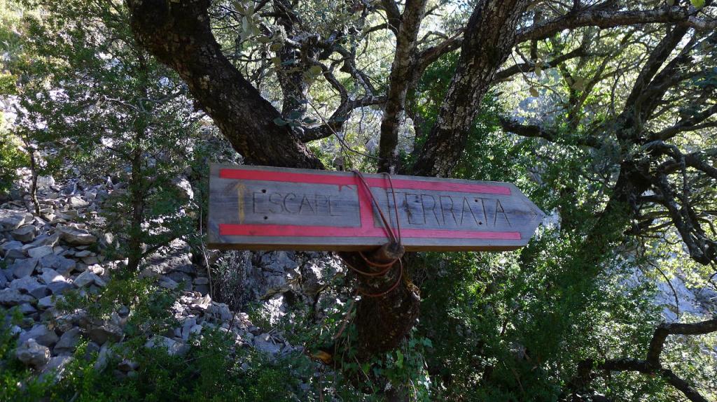 Encontramos el cartel de escape hacia la izquierda (1245m 2h07′) y la ferrata continúa hacia la derecha. Sin tanta espectacularidad como en el primer tramo alcanzamos el final de la ferrata (1355m 2h49′).