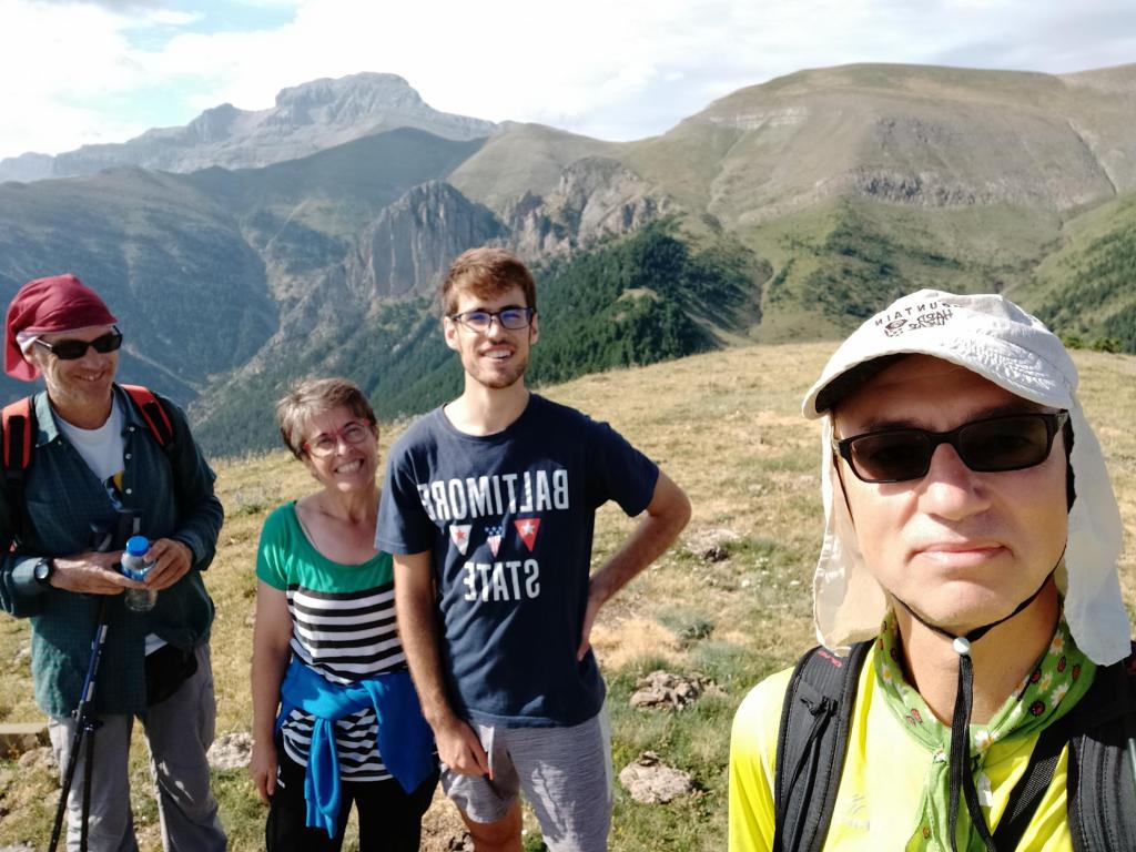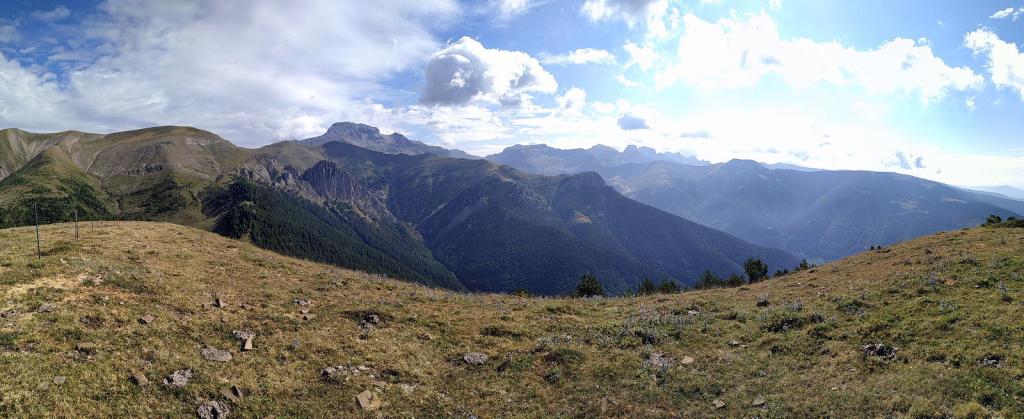 Continuamos hasta desviarnos a la derecha (1535m 1h17′) por lo que parece una senda que se cierra por el bosque de pinos lleno de ramas y arbustos espinosos, tratando de alcanzar el lomo SE del Maito. Tras una ascensión algo penosa, en los últimos metros se abre una zona de pasto que alcanza la cumbre (Maito 1877m 2h05′).