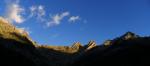 Llegamos a un hombro herboso (1992m 1h30′) a partir del cual surge una ruta balizada con puntos de pintura amarilla. A la izquierda del hombro hay un abrigo de piedras (2020 1h38′). El camino es poco claro, lo perdemos, pero vemos un poste (2105m 1h55′) clavado en el suelo que nos permite retomar la ruta. Habíamos ido demasiado bajo y subimos directos al poste.