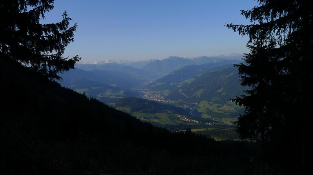 Ya en el valle el calor aprieta de lo lindo, 32ºC. Pero las previsiones del tiempo para mañana y pasado mañana son malas. Decidimos planificar una ruta corta. Volvemos a Knittelfeld, donde habíamos pasado la 1ª noche. Cenamos en la plaza, con música en vivo y, justo cuando estamos terminando, empieza a caer una tormenta impresionante. ¡¡Y nosotros que habíamos lavado ropa y la habíamos puesto a secar en la zona de aparcamiento frente al apartamento junto con las botas aireándose!!