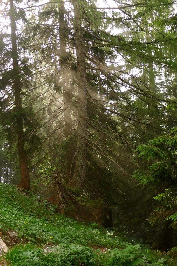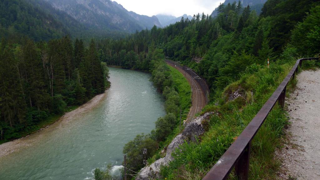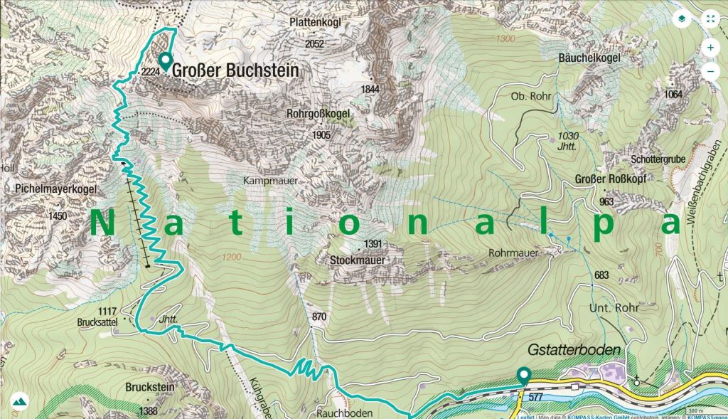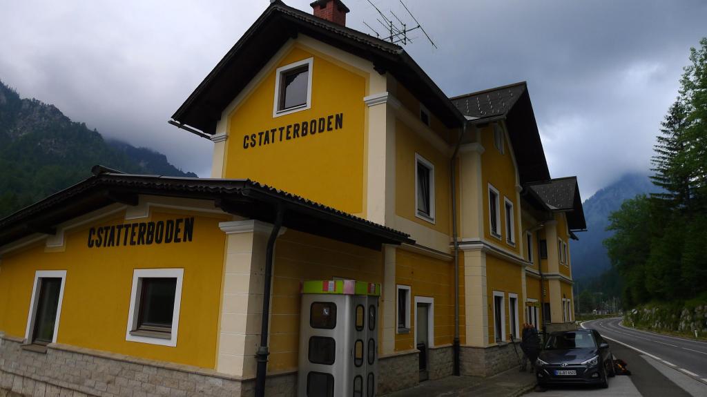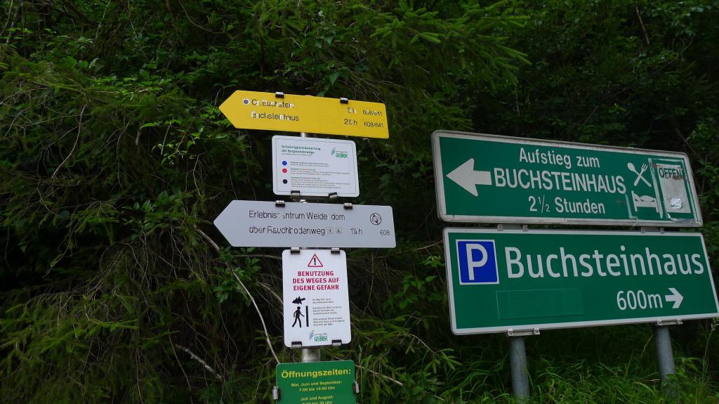 Llegamos en coche hasta el inicio de nuestra 1ª ascensión austriaca, aparcando junto a la estación de tren (Gstatterboden)(580m). Estamos en el Parque Nacional Gesäuse. Andamos unos metros por la carretera (hay carril para peatones y para bicis) y tomamos la pista que sigue de frente cuando la carretera gira a la izquierda para pasar el puente. La pista gira a la derecha, pero la senda sigue de frente, subiendo por el bosque. Avanzamos por un hayedo-abetal, con arces y serbales, siempre bien marcado con las señales rojo-blanco-rojo (sendero 641).