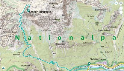 Al otro lado del collado hay un prado con gencianas y neveros. Avanzamos por un poco de hierba y luego otra vez roca hasta la cima (Grosser Buchstein 2224m 4h05′). La traducción del nombre de esta montaña es Gran Libro de Piedra, bonito nombre. El día está con nubes, nieblas y algún rato de sol. La bajada se hace larga. Paramos en el refugio 38′ a tomar un té y continuamos hasta la estación donde habíamos aparcado (580m 8h03′) descubriendo que era una parada de bus. El señor de la estación nos echa una pequeña bronca, pero no entendemos nada y hemos tenido el coche en la única sombra que había.