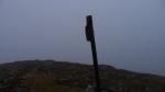 Me meto en la niebla por laderas de hierba con fuerte pendiente. La senda afronta algún paso rocoso al girar a la derecha, fácil, pero hay mala visibilidad y está todo mojado; finalmente gira a la izquierda (1980m 1h56′) para ascender a la cresta en un punto señalizado con un palo y una piedra cuya cota es 2022m. Yo lo llamo Hombro Occidental del Pic du Lac de la Chourique (2022m 1h59′), donde poco puedo quedarme porque no se ve absolutamente nada y hace un viento frío, así que me bajo rápidamente.