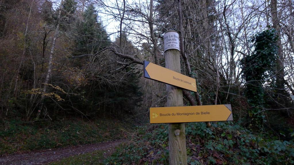 Desde el Plateau de Houndas (870m) empiezo a andar por la carretera, entre varias granjas y campos de pasto. Cuando acaba el asfalto sigue una pista. En un giro a la derecha de la pista la ruta sigue recto (967m 0h12′) y vuelvo a conectar con la pista (1085m 0h28′) más arriba. A la subida sigo la pista, pero bajo por un camino más recto (que es la ruta BTT).