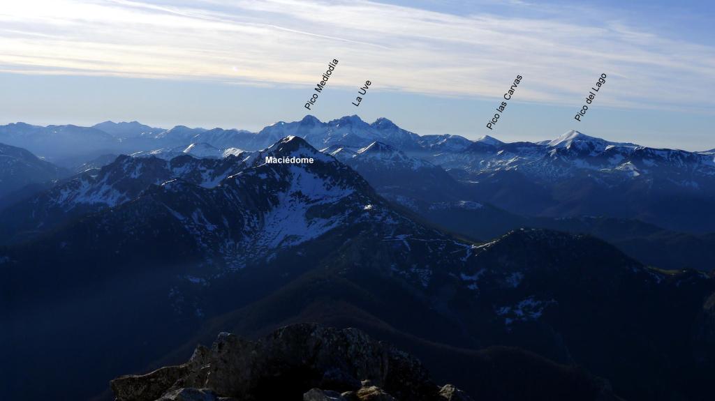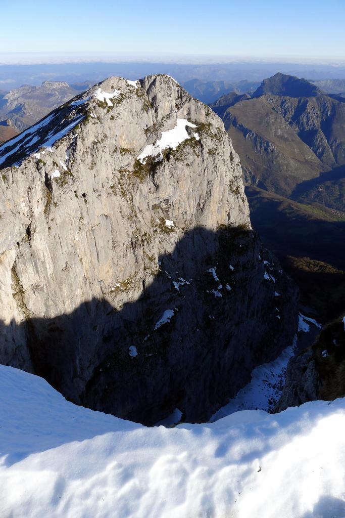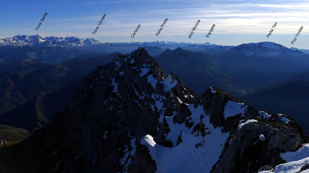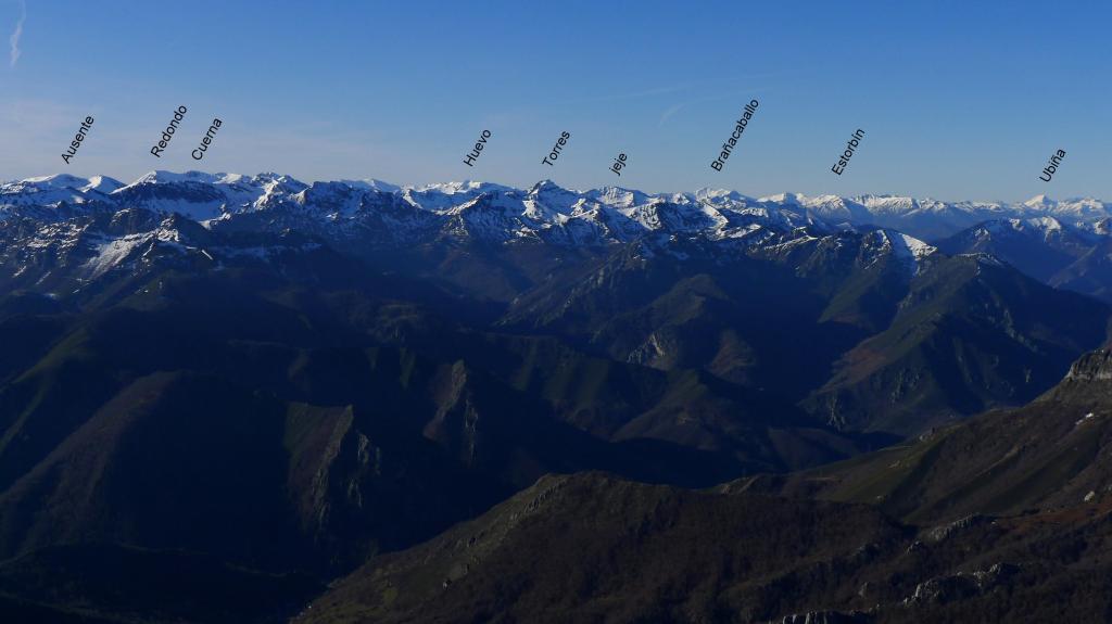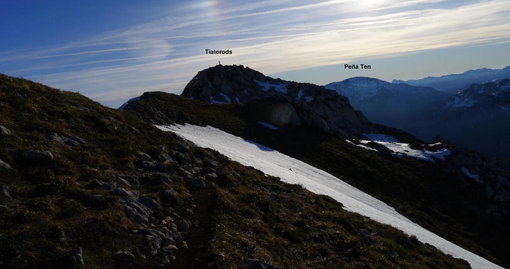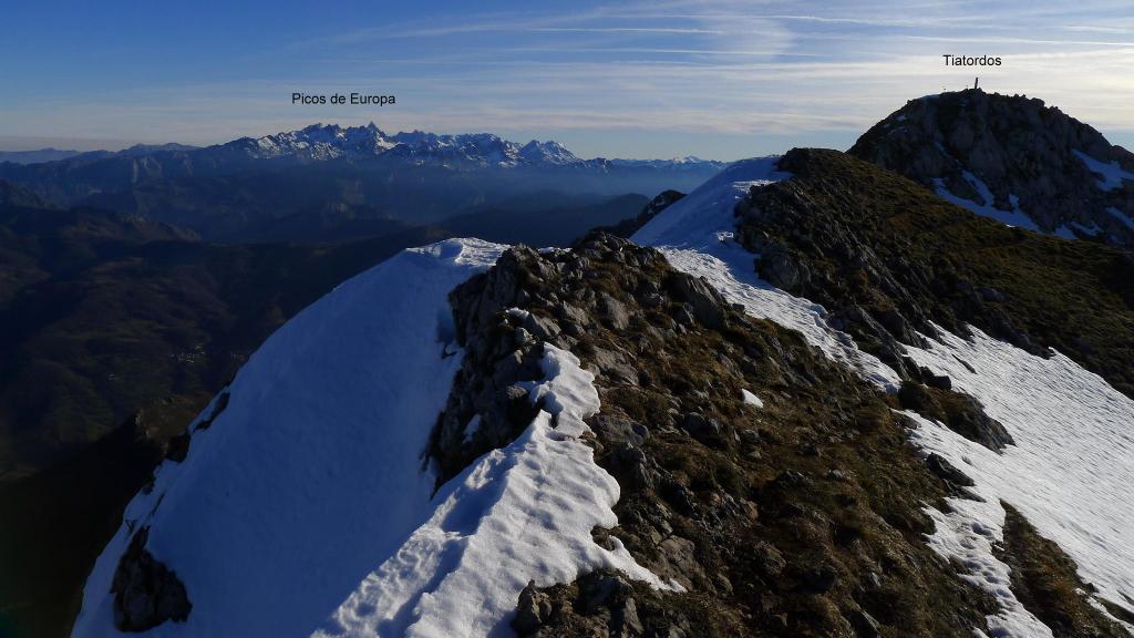 Redes fue declarado Parque Natural en 1996. En 2001 adquirió la condición de Reserva de la Biosfera por la UNESCO. Al E ya empieza a alzarse el macizo del Cornión de los Picos de Europa. El Tiatordos es un pico emblemático de la montaña asturiana y se eleva en el límite oriental del Parque Natural de Redes, fronterizo con el de Ponga. Hago la ruta sur, desde el pueblo de Pendones; pensaba hacer un recorrido circular , pero al fin subo y bajo por el mismo sitio. Es un día invernal precioso, con sol y buena temperatura. Las vistas desde la cima son impresionantes y la única dificultad son zonas de nieve dura, demasiado pequeñas e irregulares para ponerse crampones pero que, por suerte, o no tienen demasiada pendiente o las puedo esquivar saliendo del camino. Es precisamente por esta circunstancia por lo que abandono la idea de la ruta circular, ya que veo abundantes neveros en dicho recorrido.