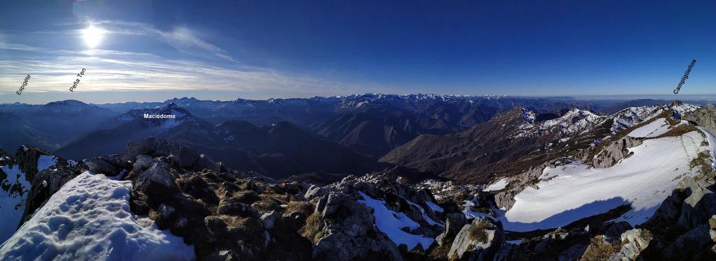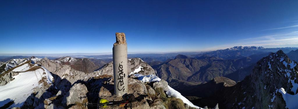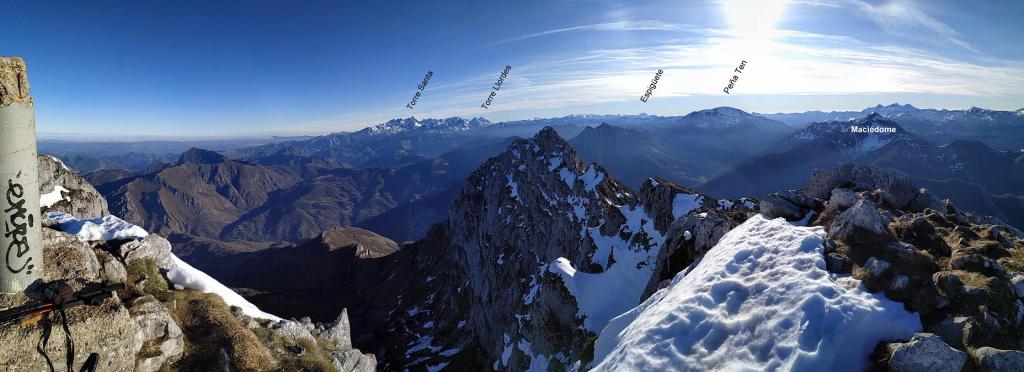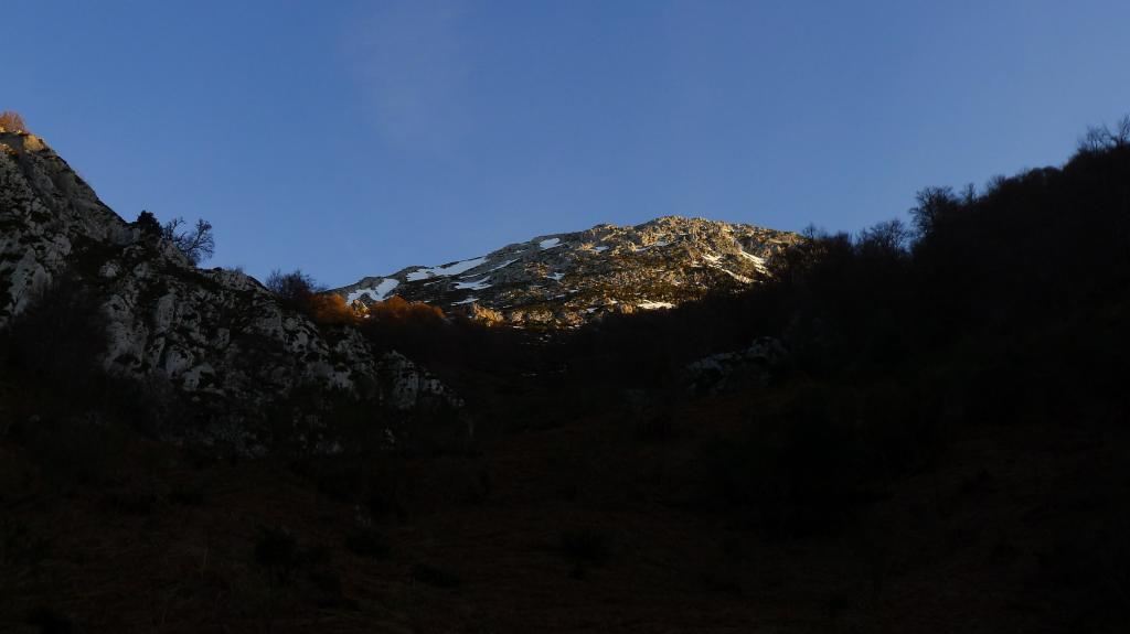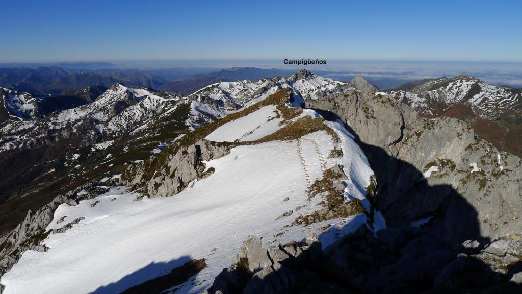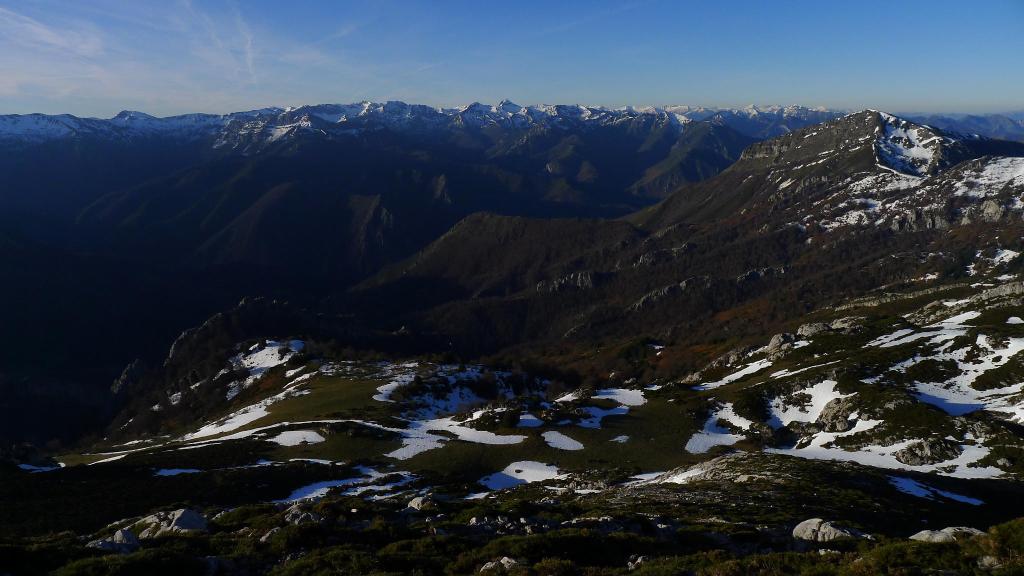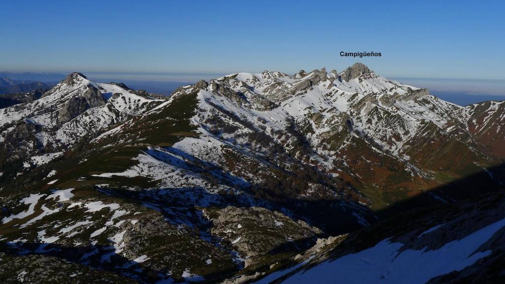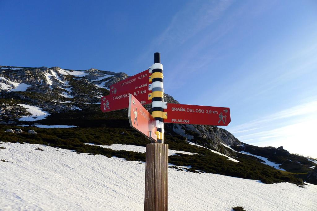 Redes fue declarado Parque Natural en 1996. En 2001 adquirió la condición de Reserva de la Biosfera por la UNESCO. Al E ya empieza a alzarse el macizo del Cornión de los Picos de Europa. El Tiatordos es un pico emblemático de la montaña asturiana y se eleva en el límite oriental del Parque Natural de Redes, fronterizo con el de Ponga. Hago la ruta sur, desde el pueblo de Pendones; pensaba hacer un recorrido circular , pero al fin subo y bajo por el mismo sitio. Es un día invernal precioso, con sol y buena temperatura. Las vistas desde la cima son impresionantes y la única dificultad son zonas de nieve dura, demasiado pequeñas e irregulares para ponerse crampones pero que, por suerte, o no tienen demasiada pendiente o las puedo esquivar saliendo del camino. Es precisamente por esta circunstancia por lo que abandono la idea de la ruta circular, ya que veo abundantes neveros en dicho recorrido.