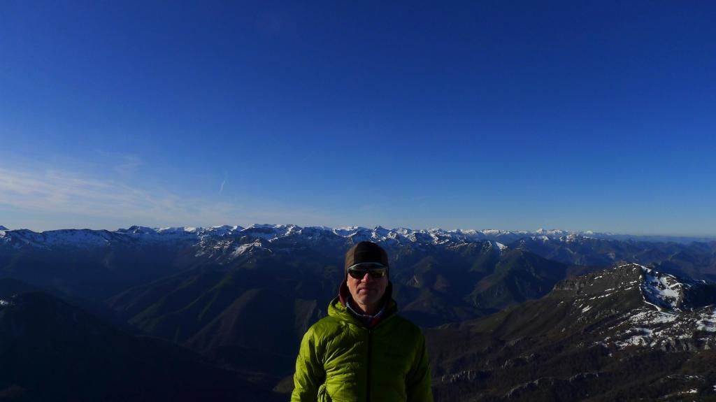 Se llega a una antecima que se faldea por la derecha y, por fin, se ve la cumbre. Hay que recorrer unos metros de espectacular cresta con increíbles cortados a mi izquierda. Cima del Tiatordos (1951m 2h35′). Disfruto un buen rato de la cima y de las vistas, hasta comenzar el descenso (3h09′). Llega un montañero que viene de Taranes (ruta N), única presencia humana en todo el recorrido.