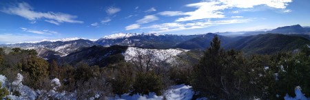 Hay un desvío a la derecha (marca verde y blanca) (1325m 2h01′) por una senda que asciende a la cima. Es la parte más pendiente del recorrido pero la más entretenida. En la cima del Grosín (1422m 2h13′) hay un vértice geodésico y unas vistas espectaculares.